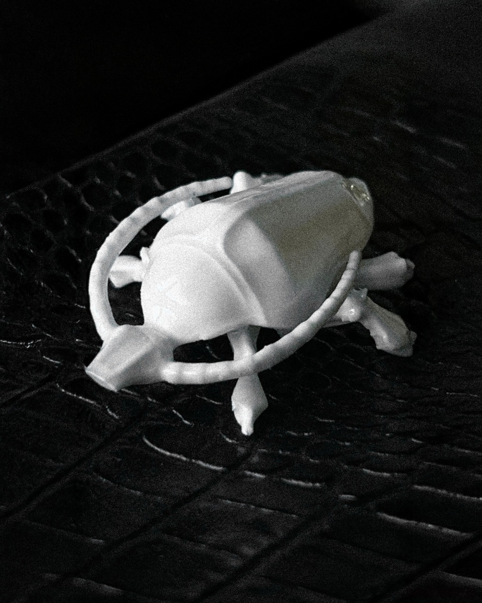 Element ozdobny: Skarabeusz wykonany w technologii druku 3D, kolor biały