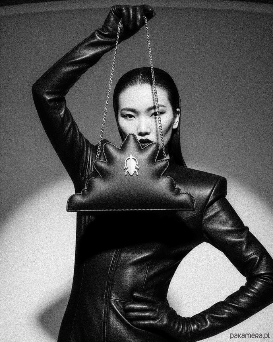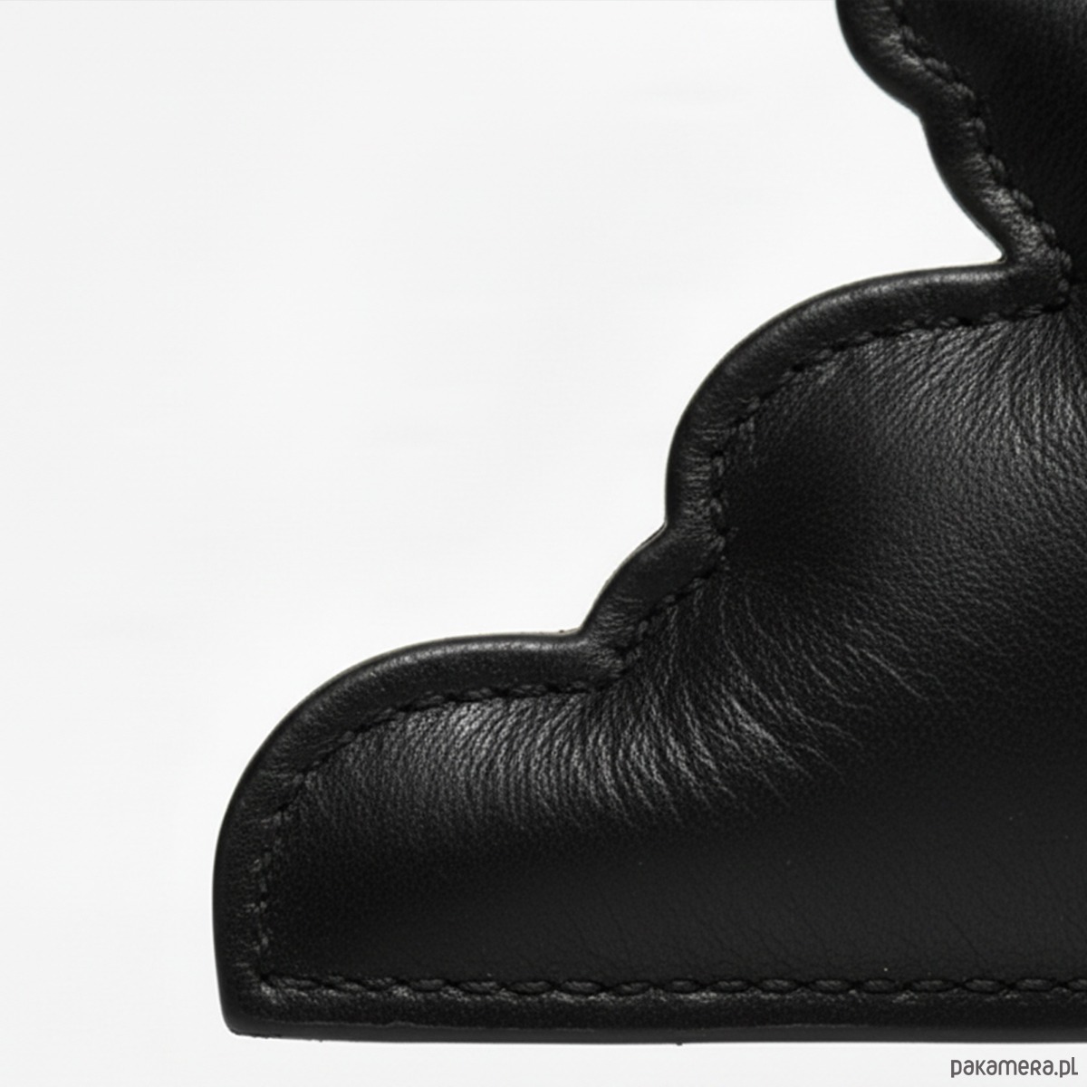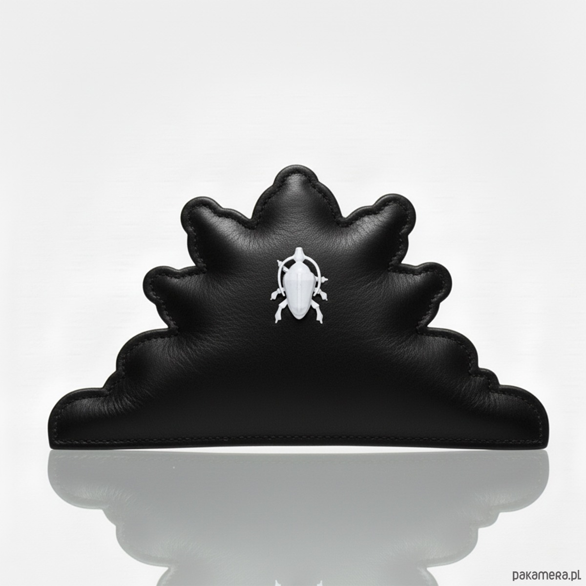 Torebka kopertówka wykonana ręcznie ze skóry naturalnej licowej o wyraźnej fakturze. Kształt został zaprojektowany na bazie szablonu artystki NeSpoon. Z przodu znajduje się ozdobny element w formie skarabeusza, wykonany w technologii druku 3D z materiału w kolorze białym. Torebka zamykana na zamek błyskawiczny umieszczony z tyłu. Jednokomorowe wnętrze. Wyposażona jest w odpinany i regulowany pasek na ramię, dzięki czemu można ją nosić zarówno w dłoni jako klasyczną kopertówkę, jak i na ramieniu. Krawędzie cięte i lakierowane.