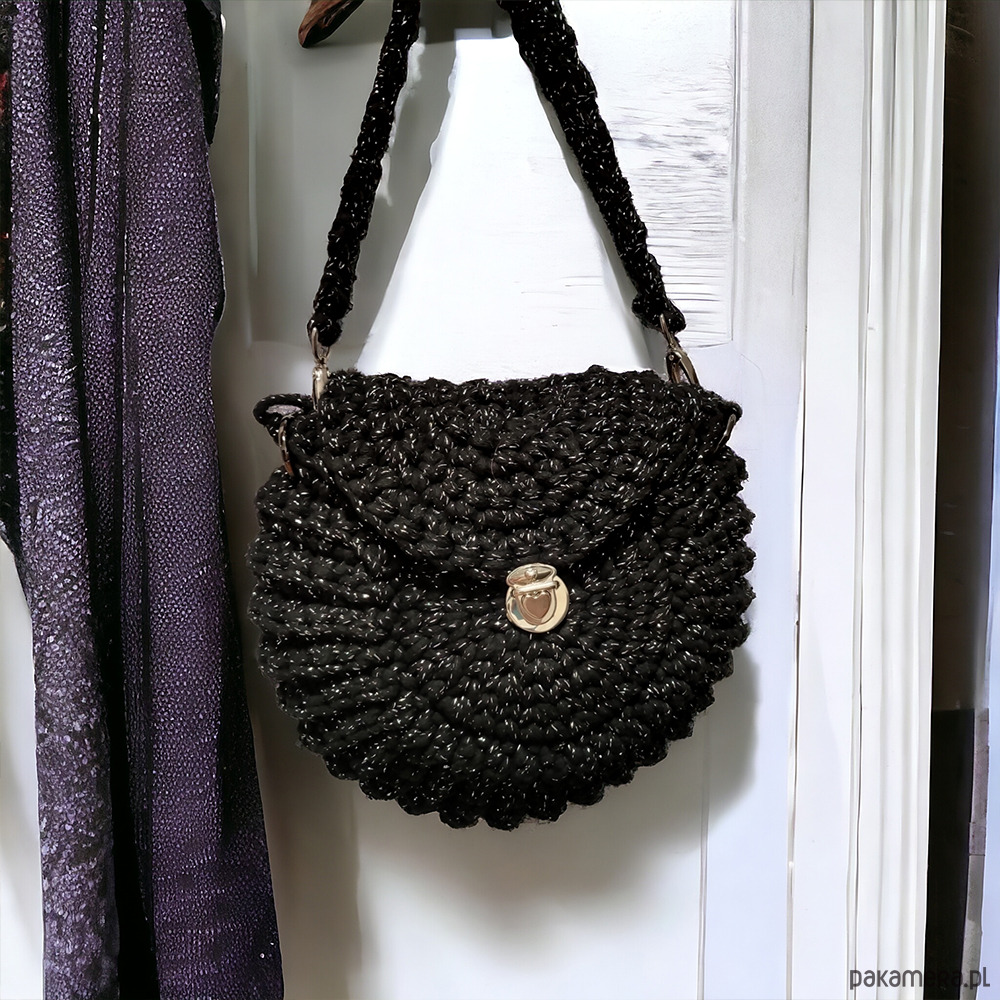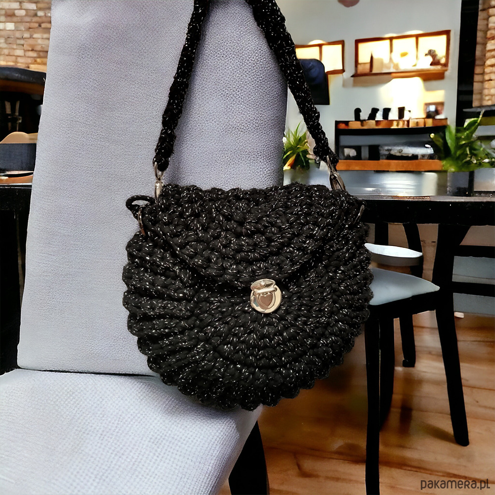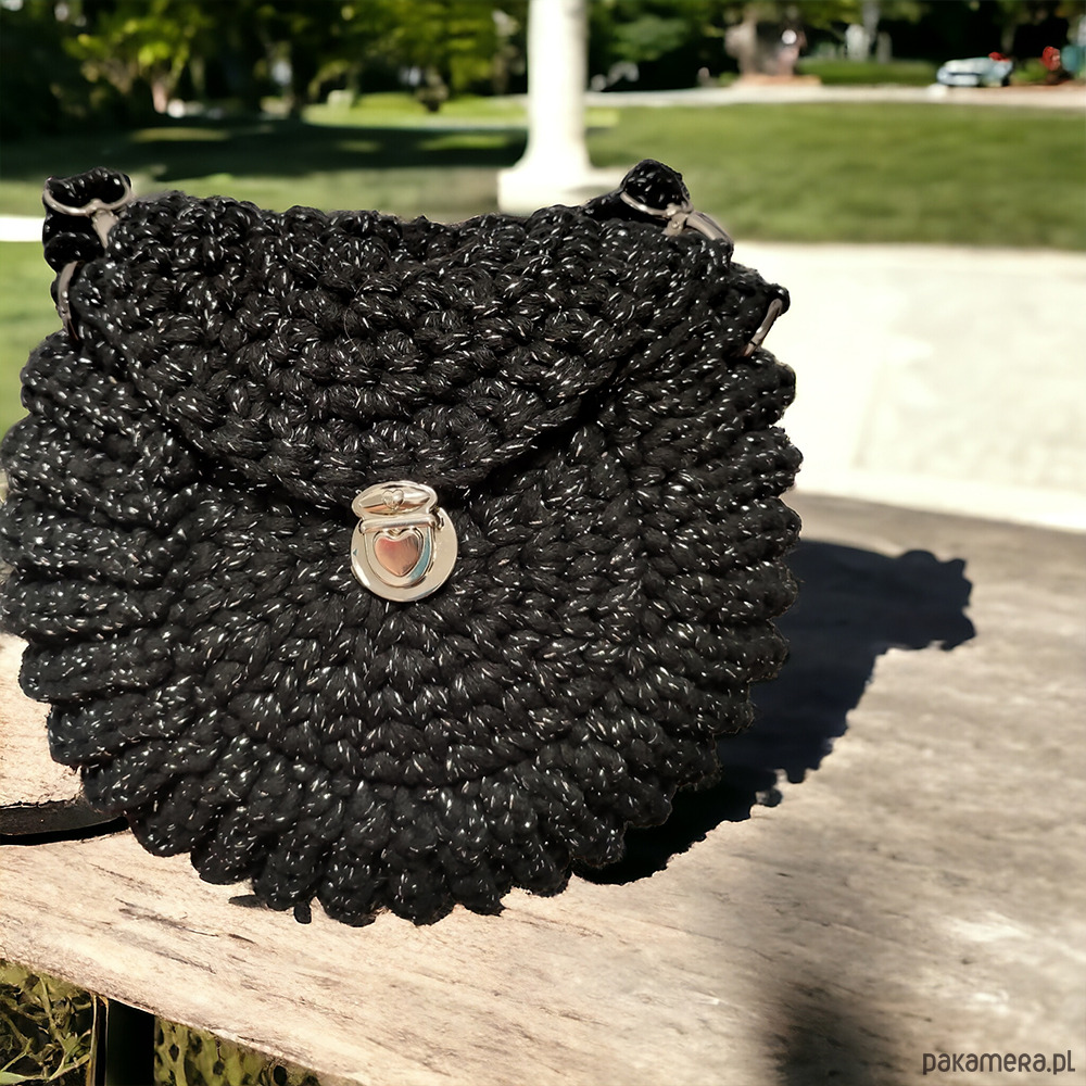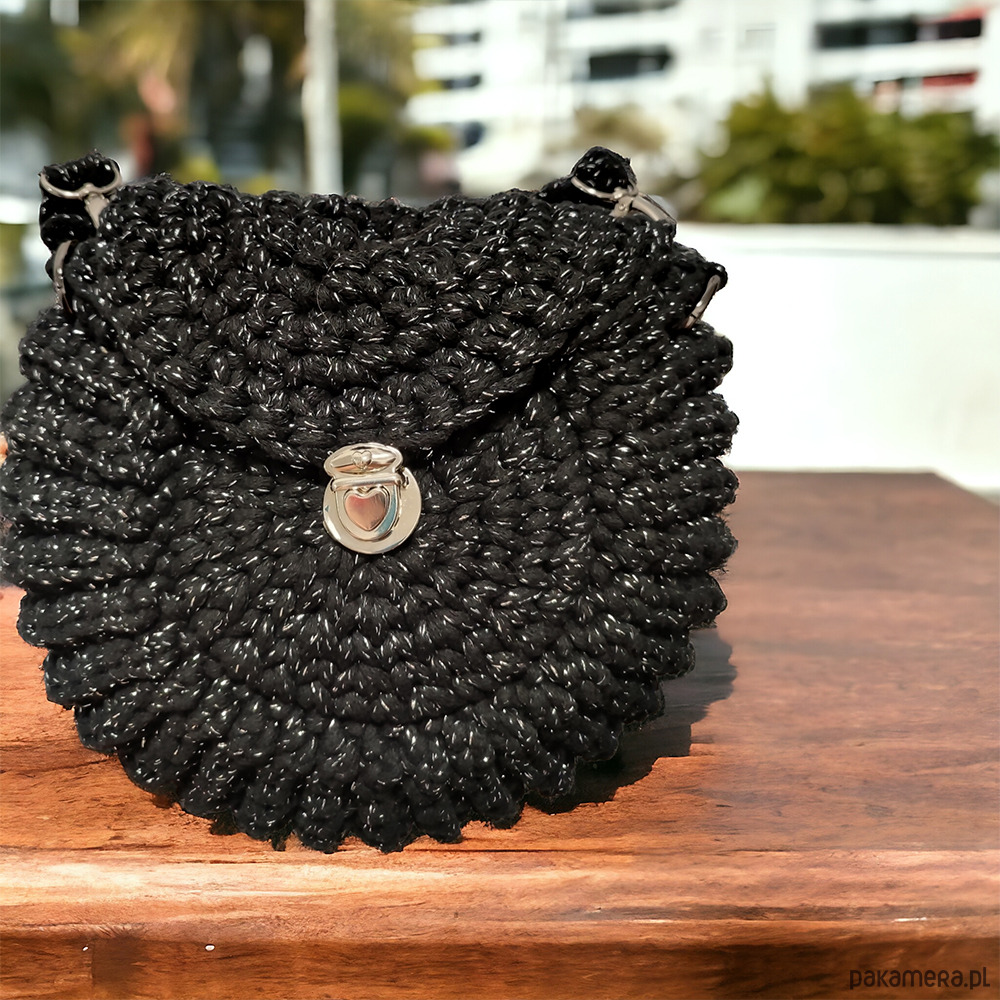 Czarna torebka “Oreo” to wyjątkowy, ręcznie wykonany dodatek z naturalnego bawełnianego sznurka, ozdobiony zieloną błyszczącą nitką. Okrągły kształt przypominający ciasteczko i wygodne zapięcie w kształcie serca łączą styl z funkcjonalnością. Idealna do każdej stylizacji, czarna torebka “Oreo” zachwyca elegancją i oryginalnym designem.