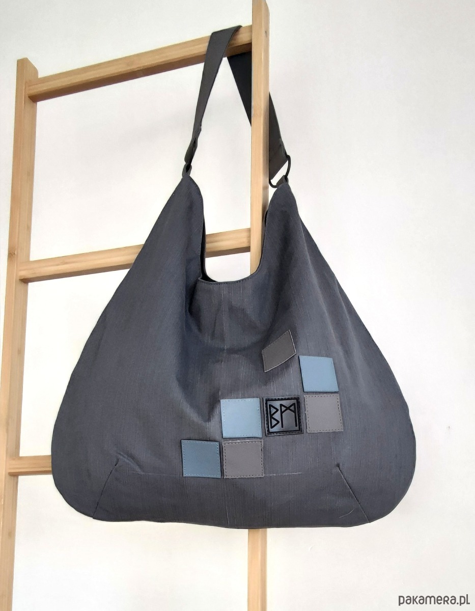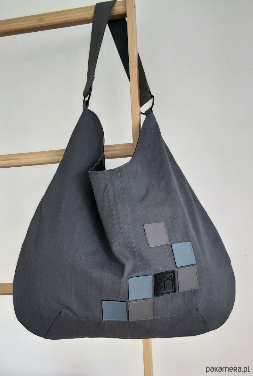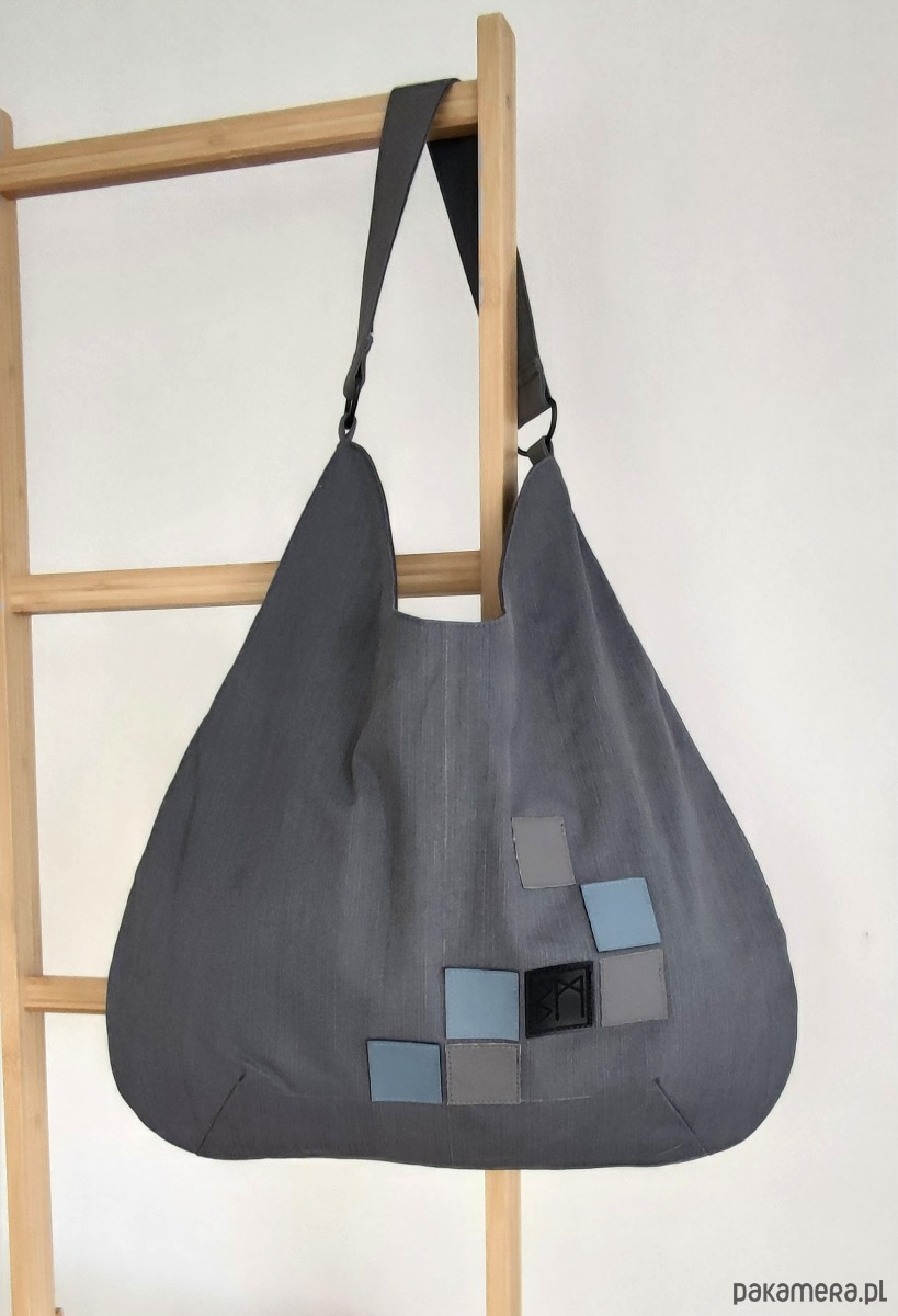 Torba na ramie, ładnie trzyma kształt. Front torby zdobią pixele wykonane ze sztucznej skóry. Uchwyt wykonany z eko skóry. Zamykana na magnes. Wewnątrz podwójna kieszonka zamykaną na suwak.