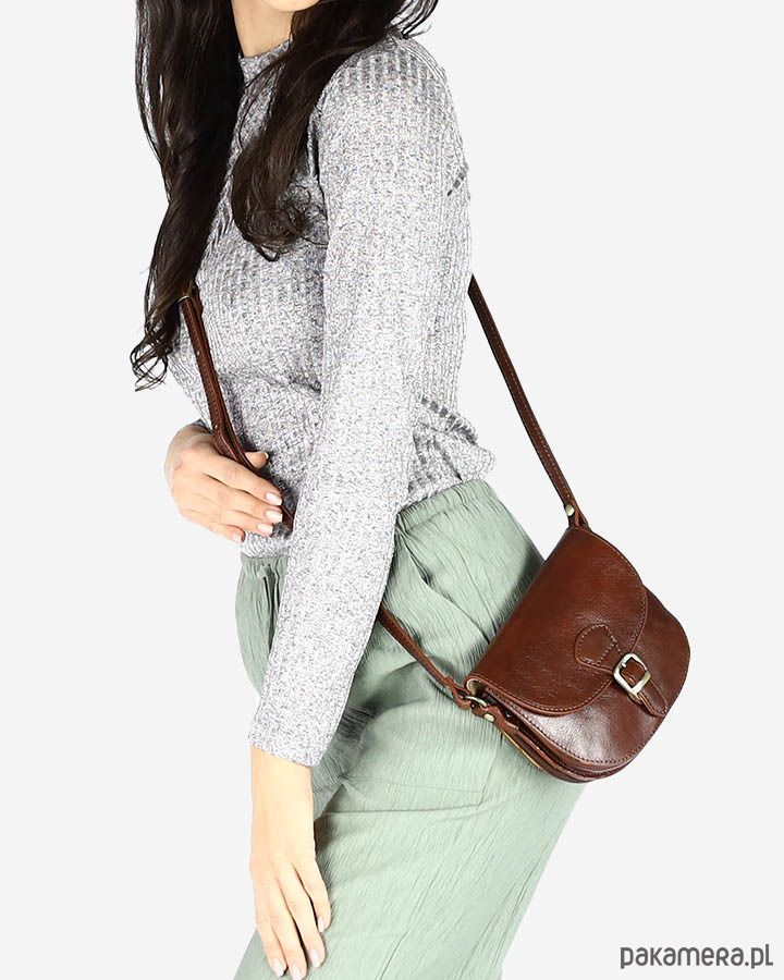 Torebka przez ramię włoska listonoszka skórzana - MARCO MAZZINI brąz