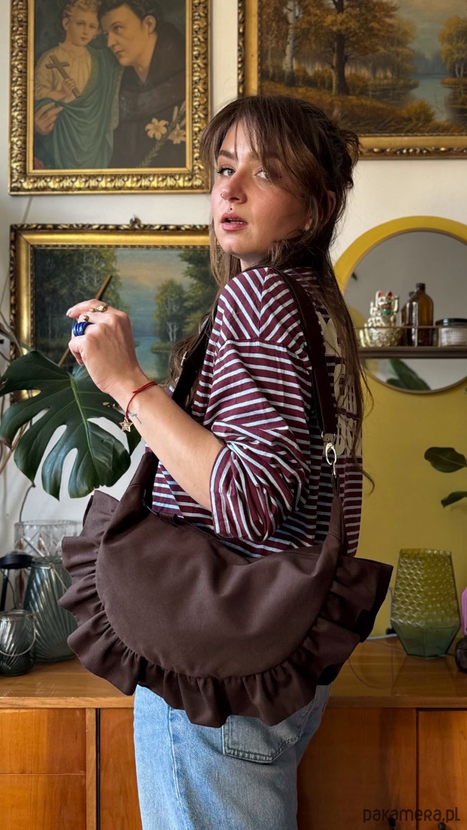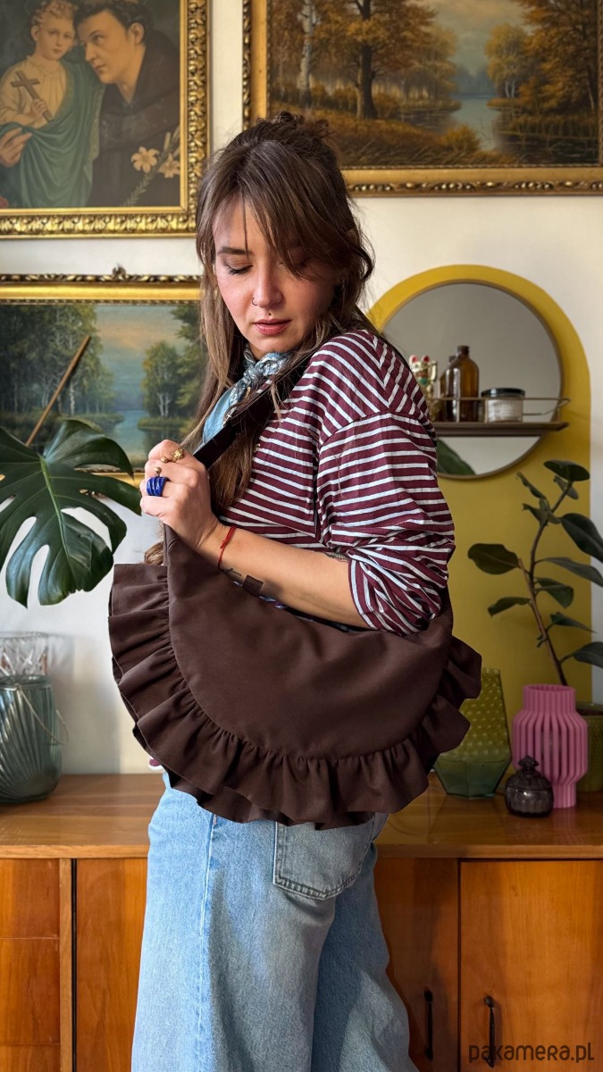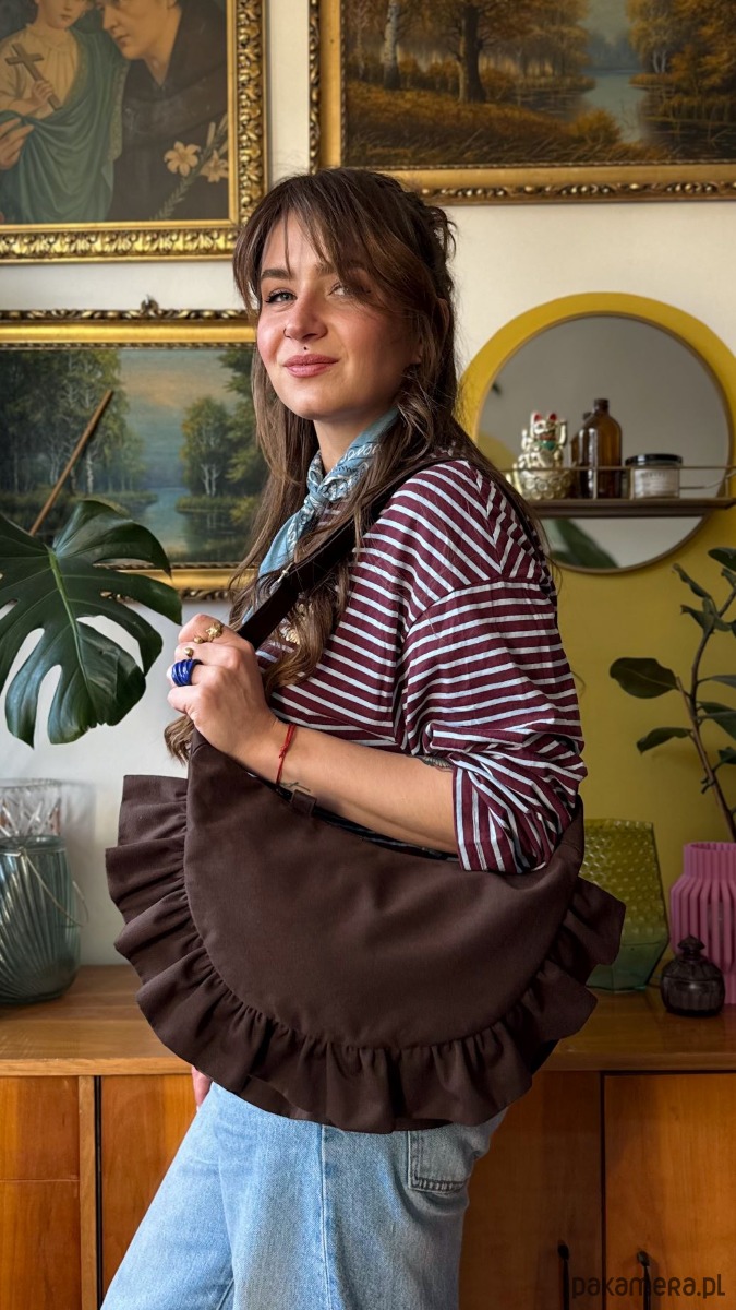 Niewątpliwym atutem tej torebki są sporych rozmiarów falbanki.