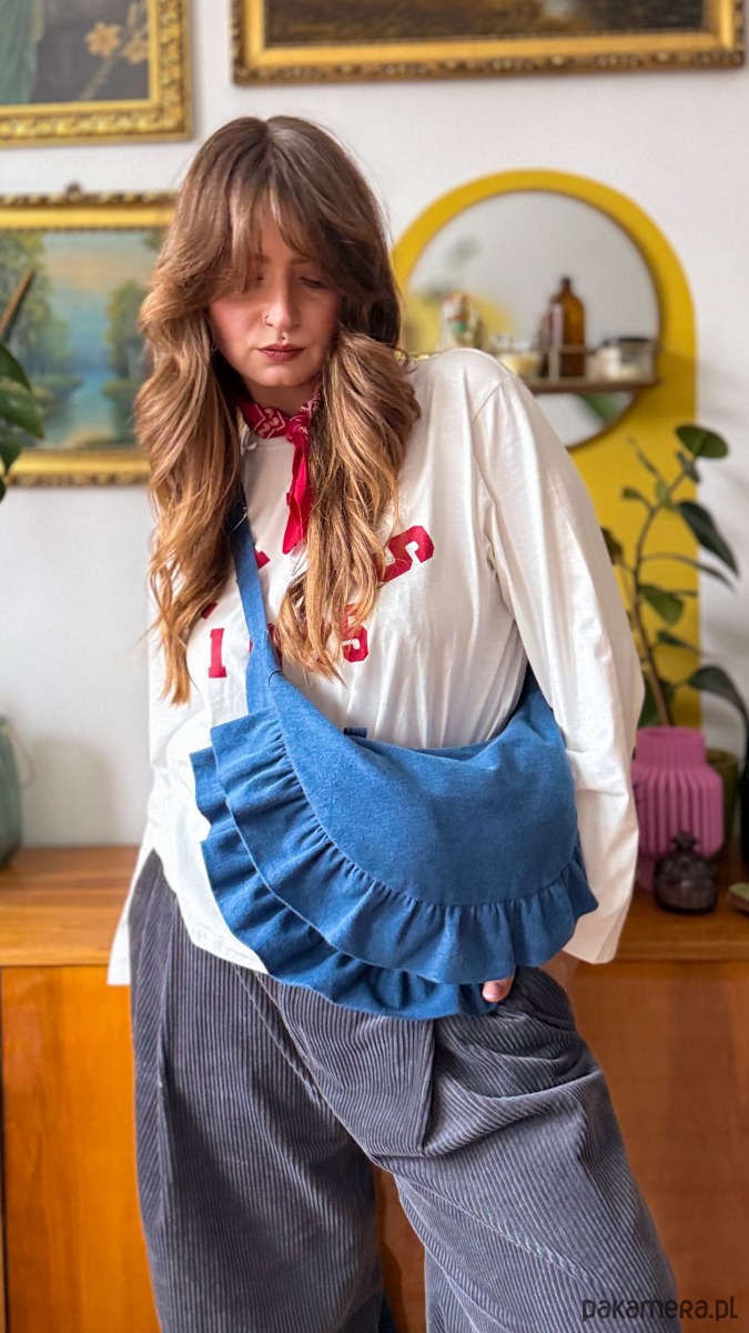 Niewątpliwym atutem tej torebki są sporych rozmiarów falbanki.
