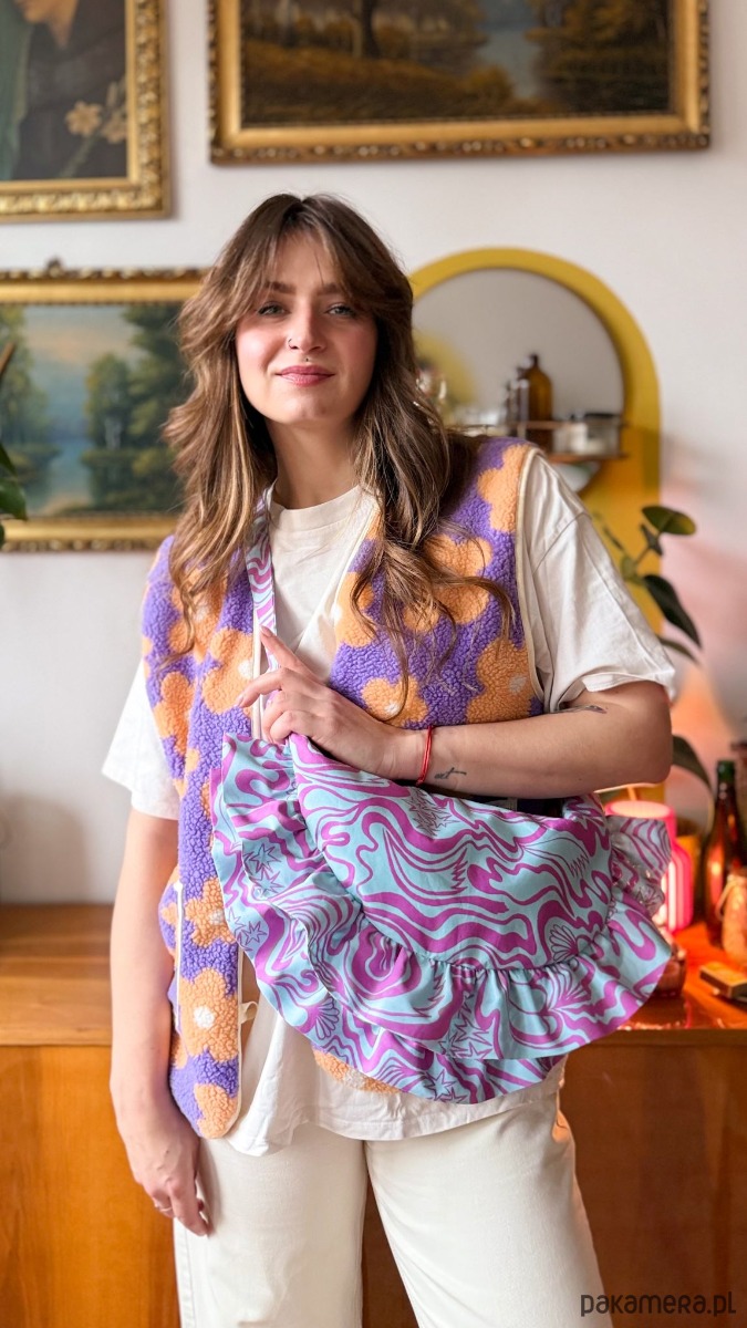 Niewątpliwym atutem tej torebki są sporych rozmiarów falbanki.