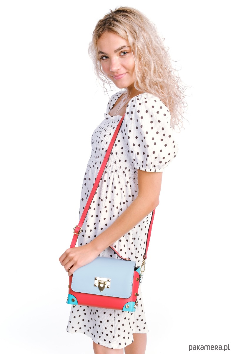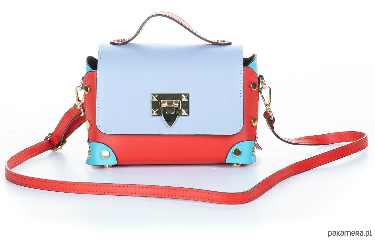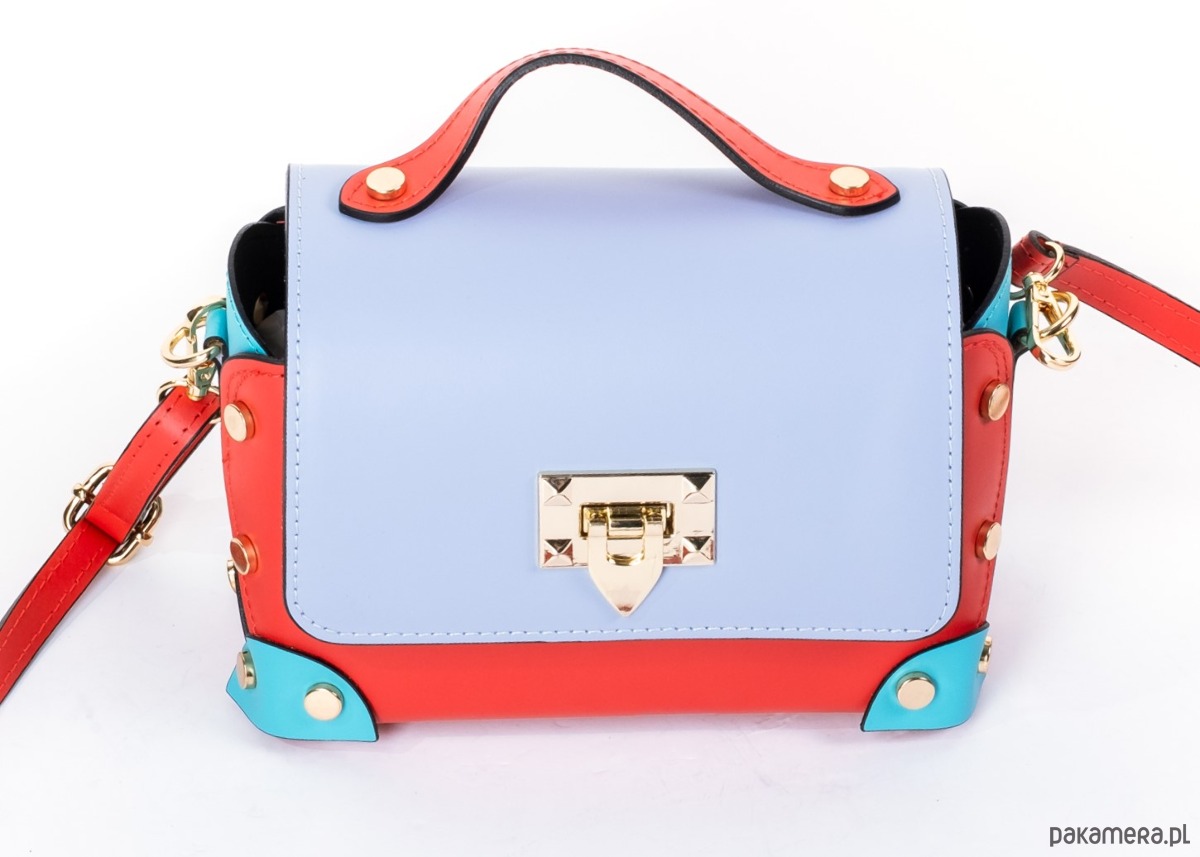 Torebka Skórzana - 3 kolory - crossbody , ozdobne nity (7043)