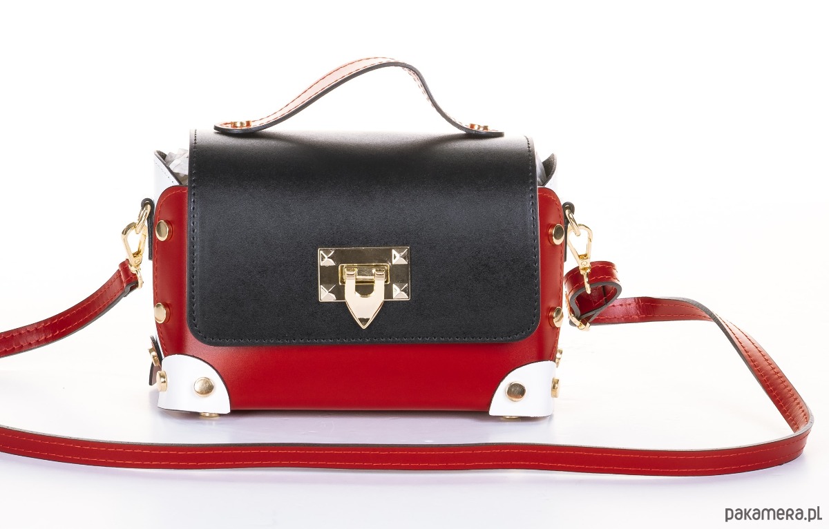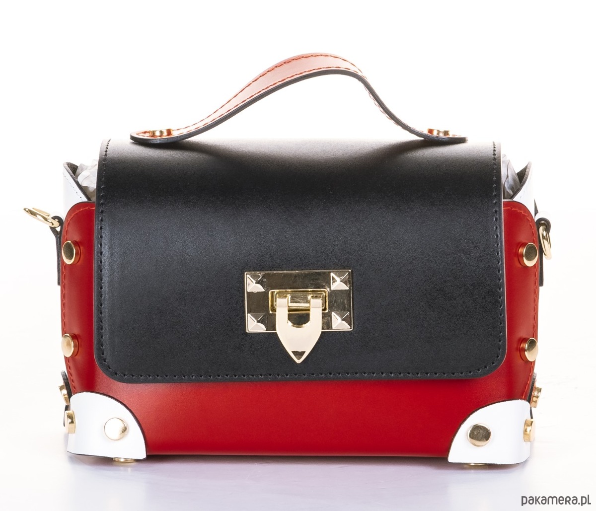 Torebka Skórzana - 3 kolory - crossbody , ozdobne nity (7044)