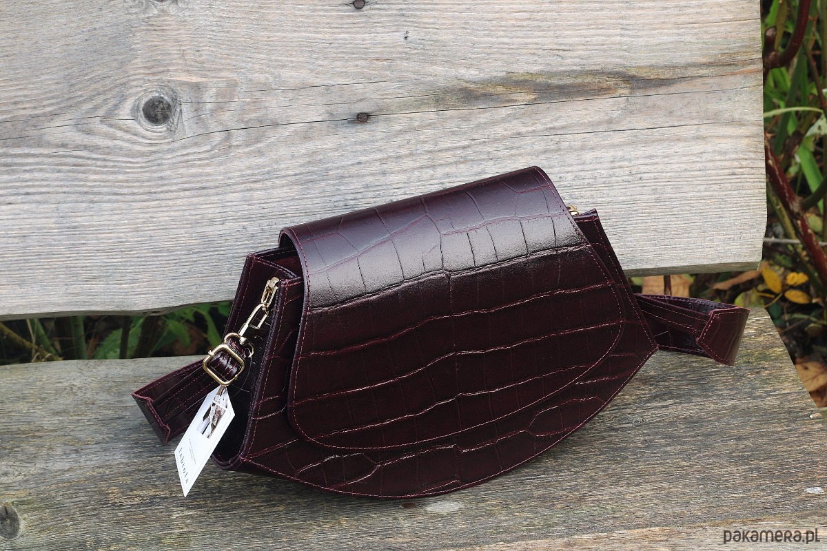 Torebka Skórzana ASTRID S burgundowa śliwka CroCo GOLD