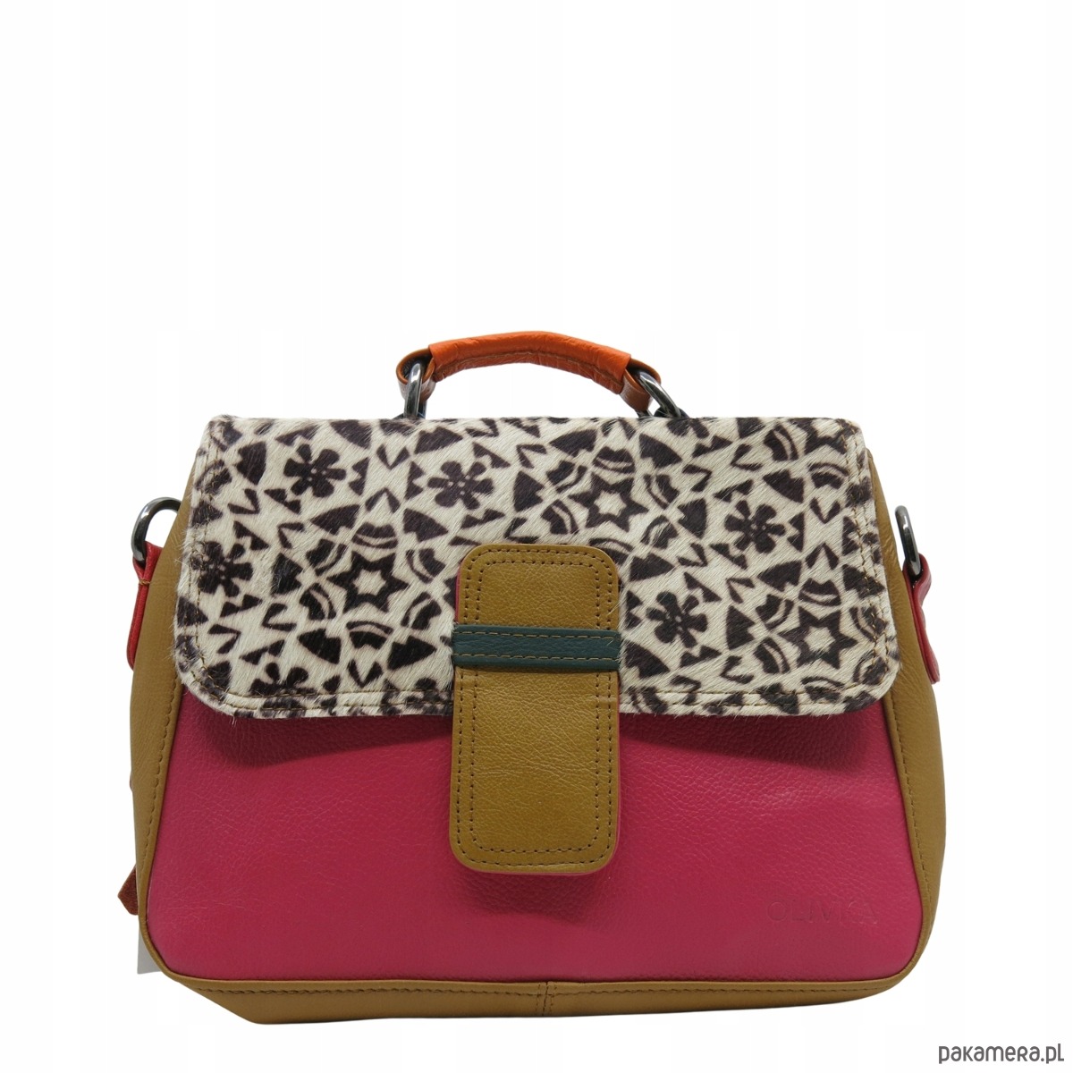 Torebka skórzana damska klasyczna rączka pasek ze skrawków OLIVKA