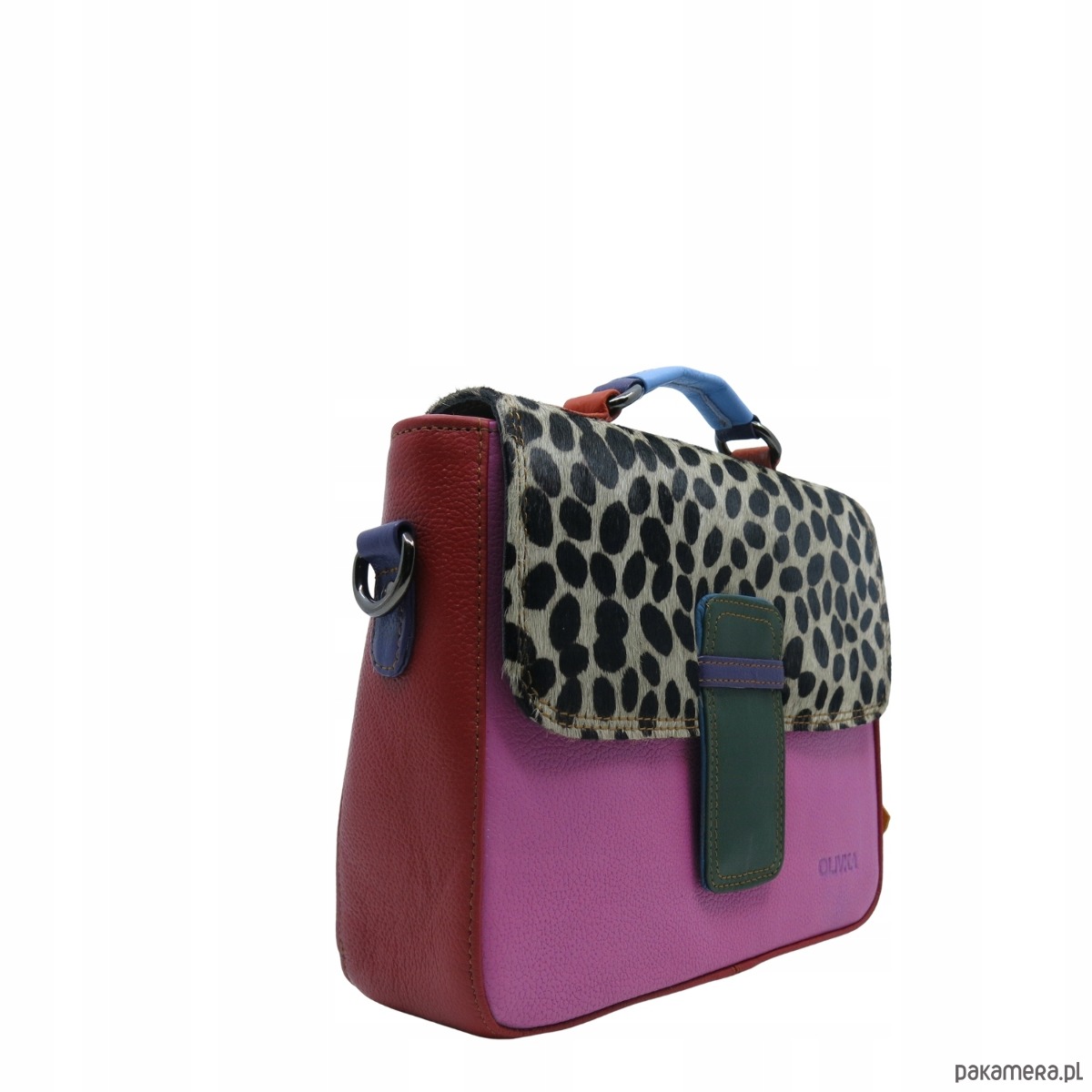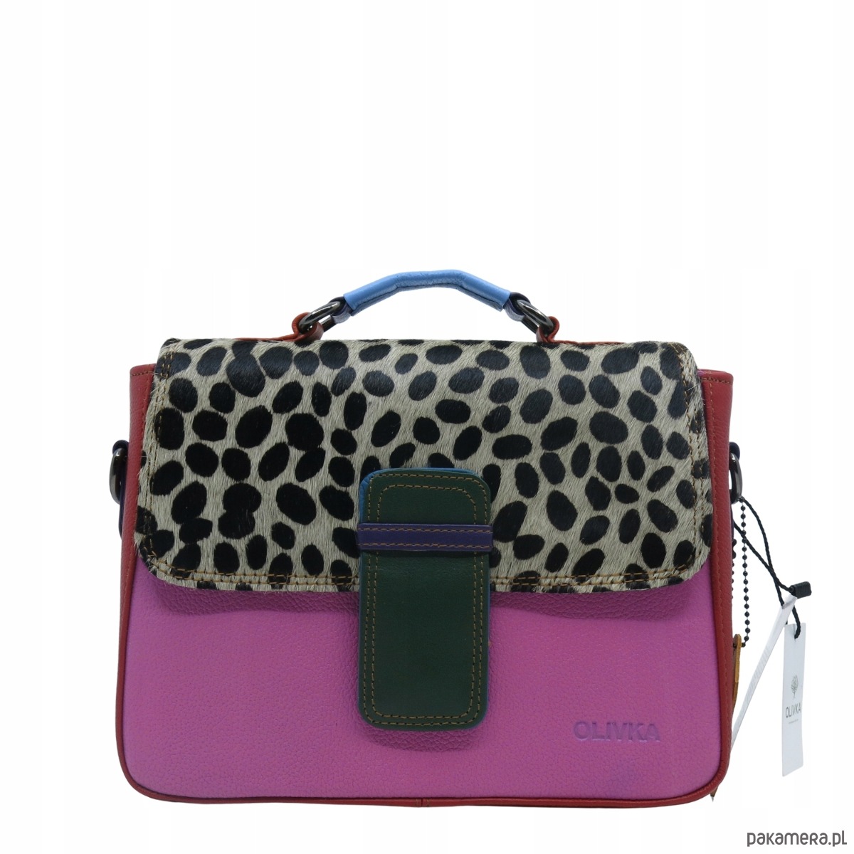 Torebka skórzana damska klasyczna rączka pasek ze skrawków OLIVKA