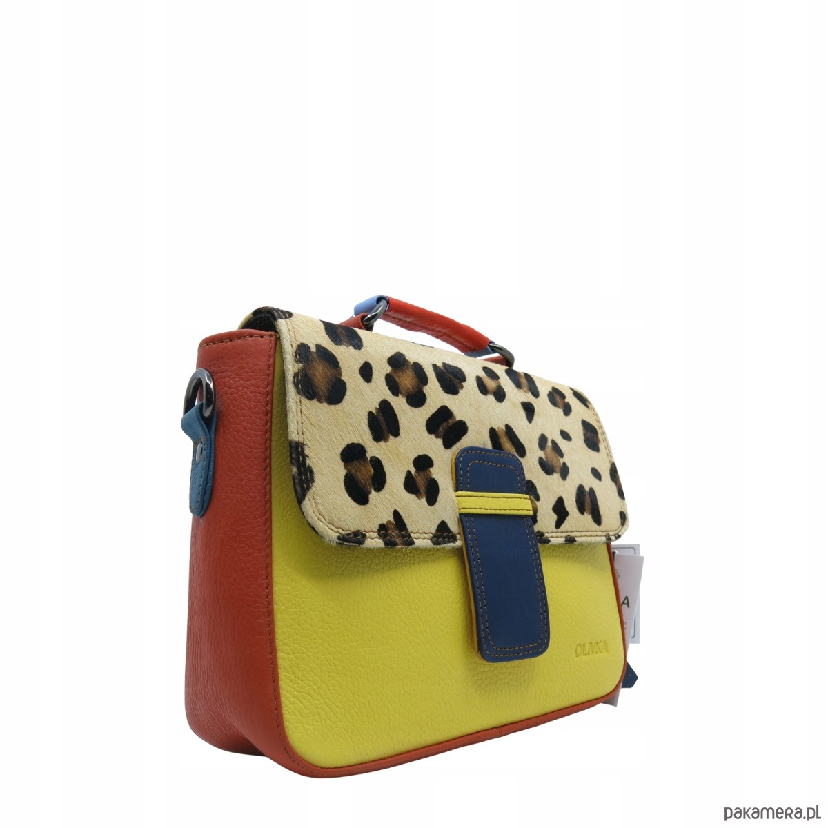 Torebka skórzana damska klasyczna rączka pasek ze skrawków OLIVKA