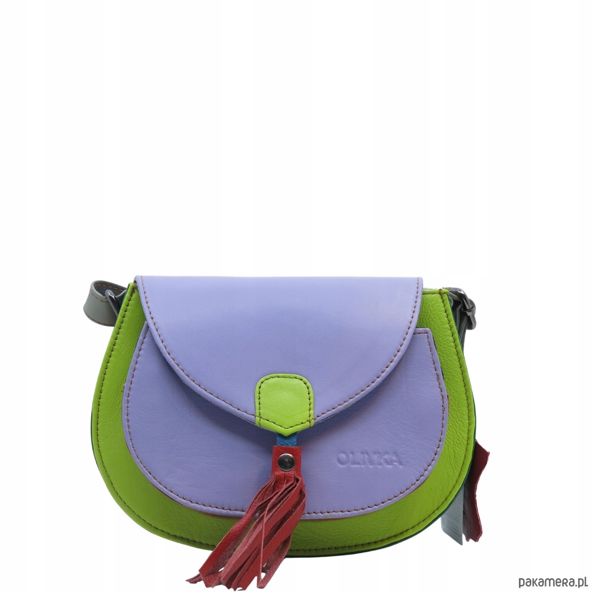 Torebka skórzana damska listonoszka oryginalna kolorowa zero waste OLIVKA