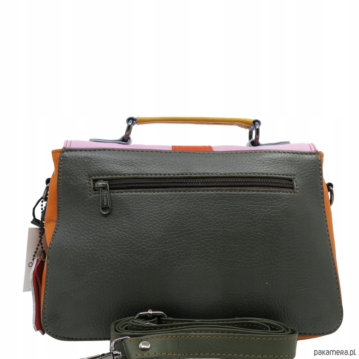 Torebka skórzana do ręki i na ramię, regulowany pasek, kolorowa eko OLIVKA