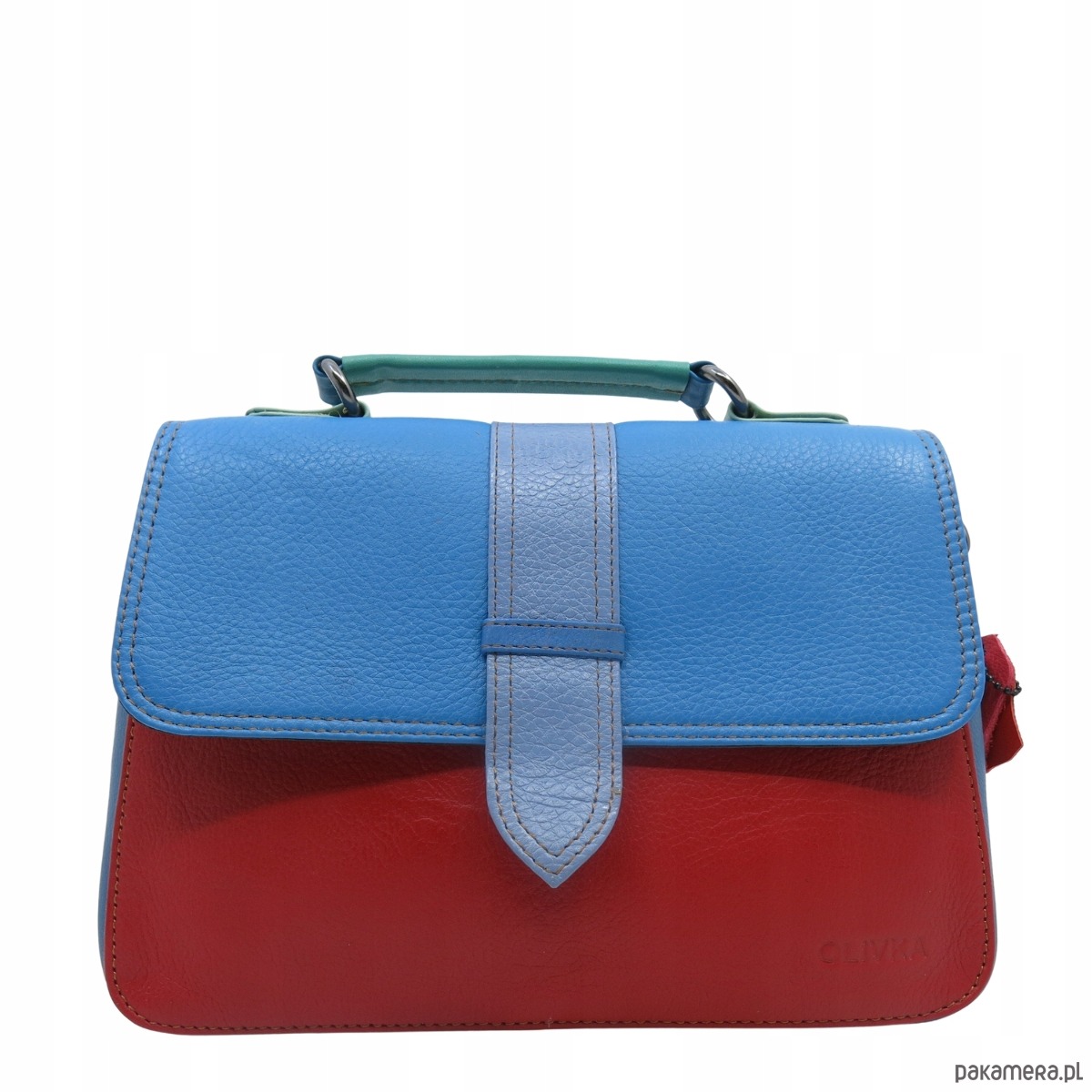 Torebka skórzana do ręki i na ramię, regulowany pasek, kolorowa eko OLIVKA