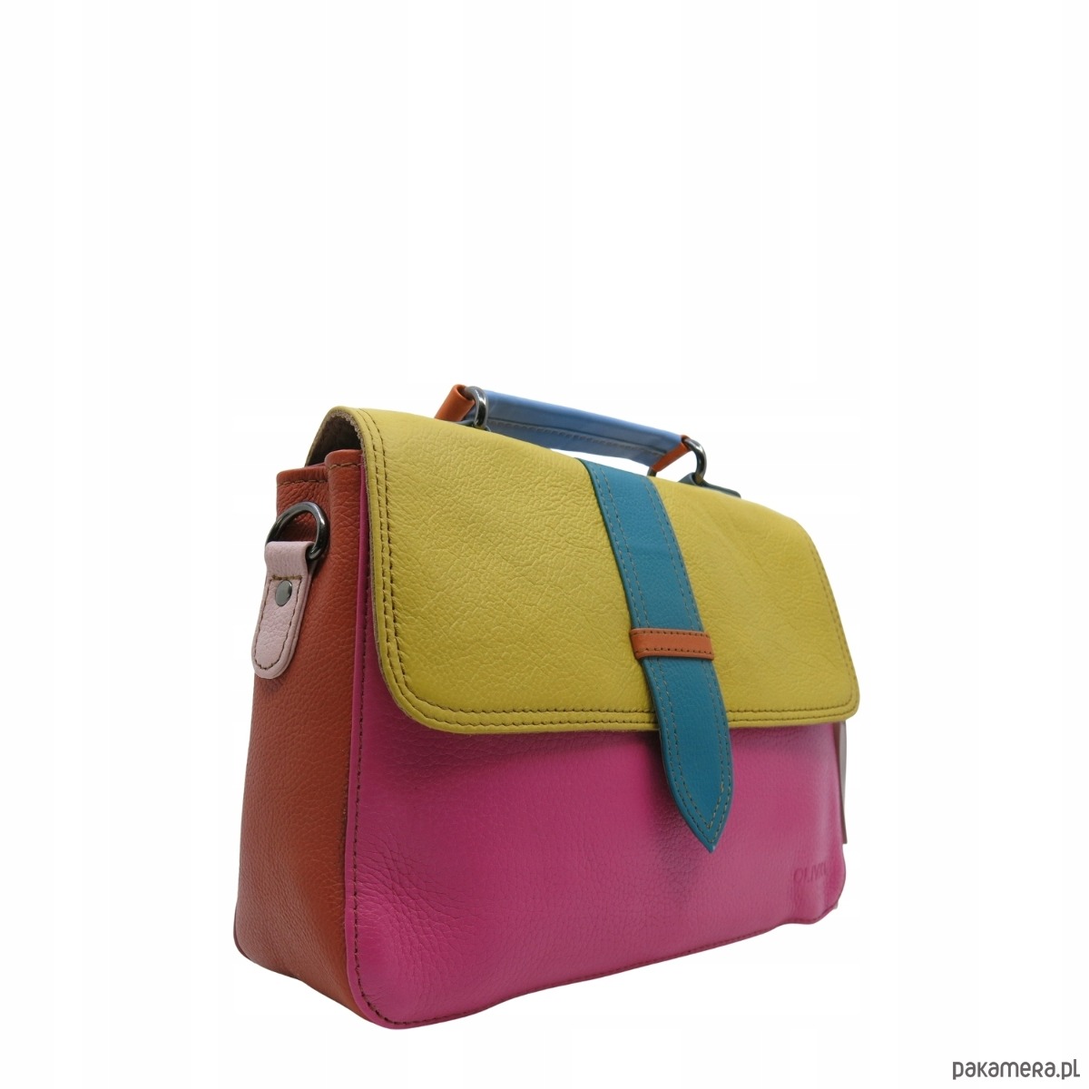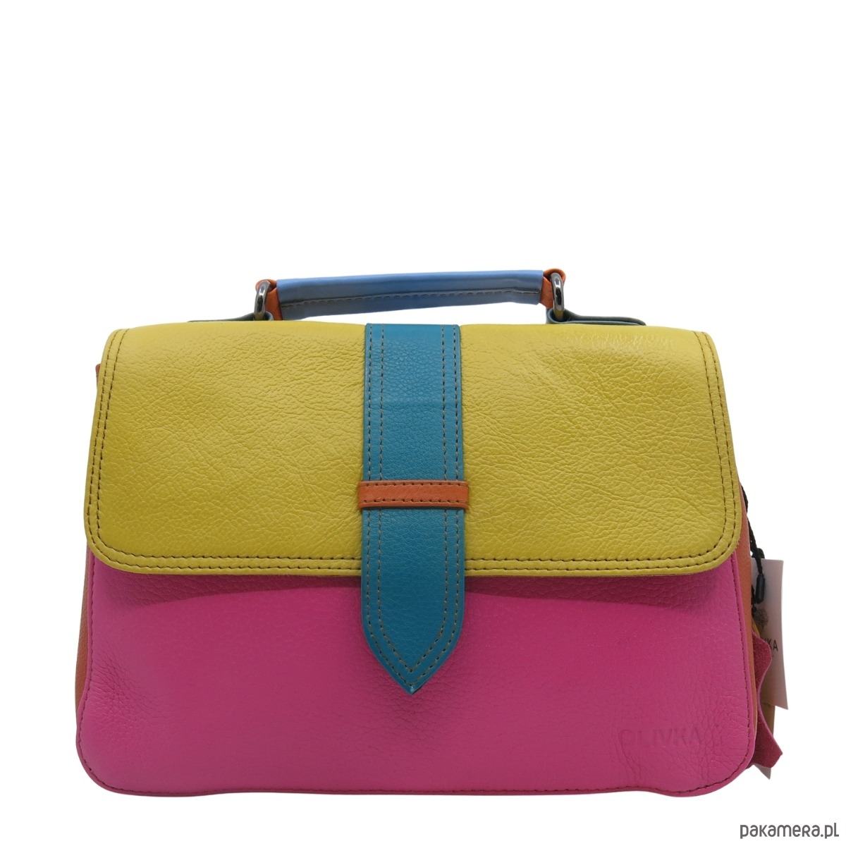 Torebka skórzana do ręki i na ramię, regulowany pasek, kolorowa eko OLIVKA