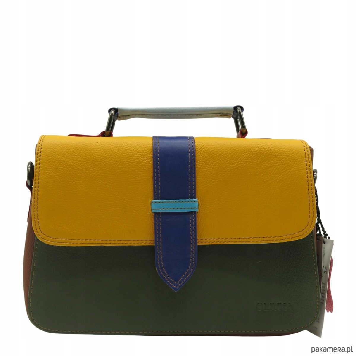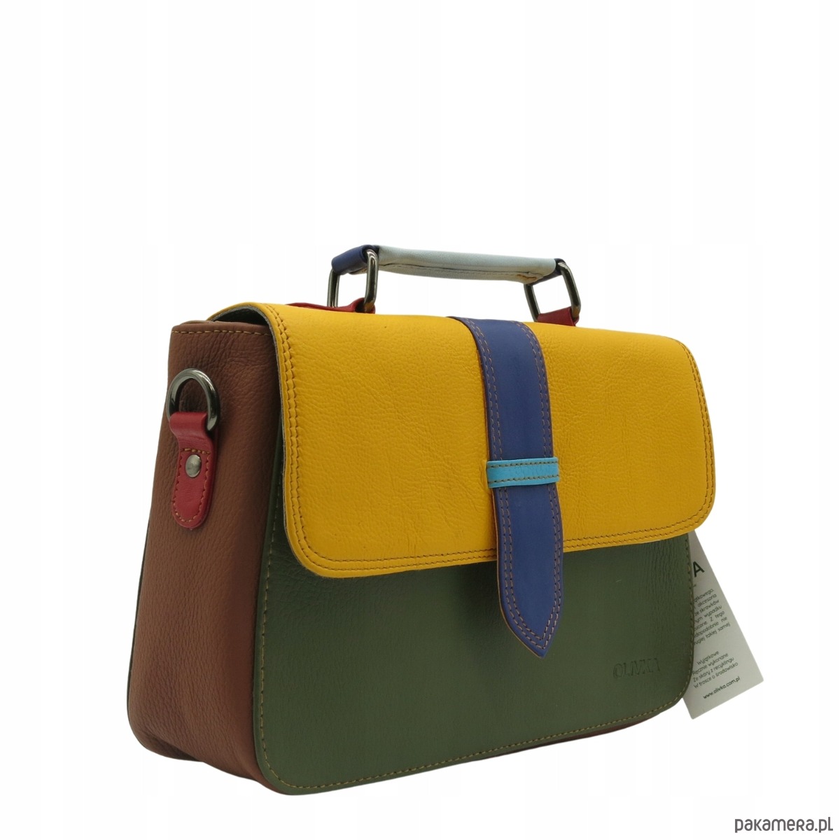 Torebka skórzana do ręki i na ramię, regulowany pasek, kolorowa eko OLIVKA