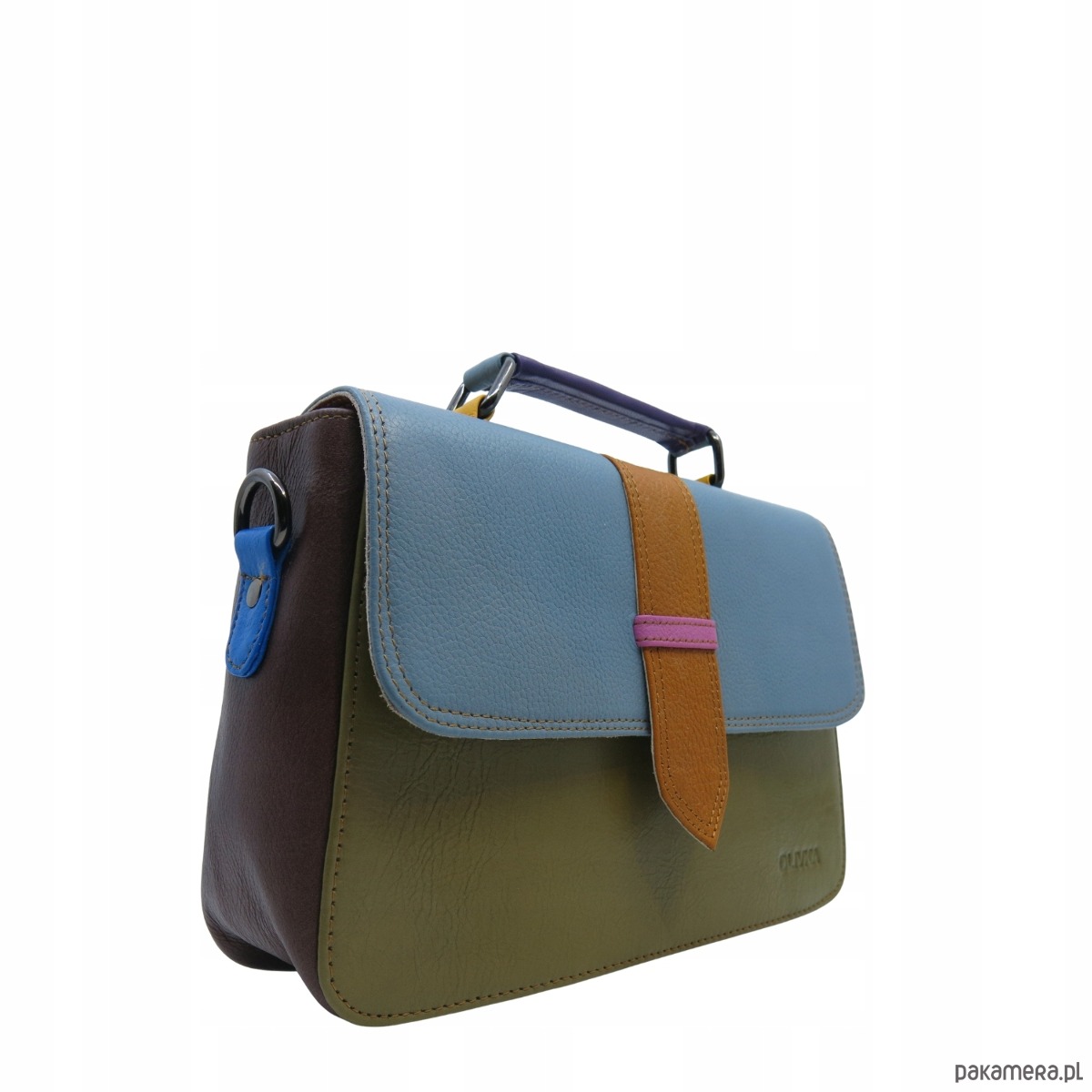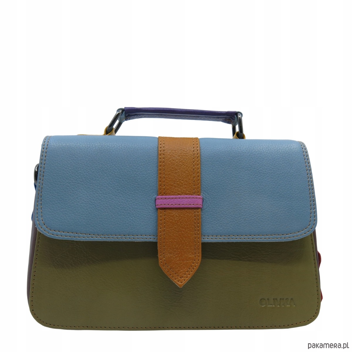 Torebka skórzana do ręki i na ramię, regulowany pasek, kolorowa eko OLIVKA
