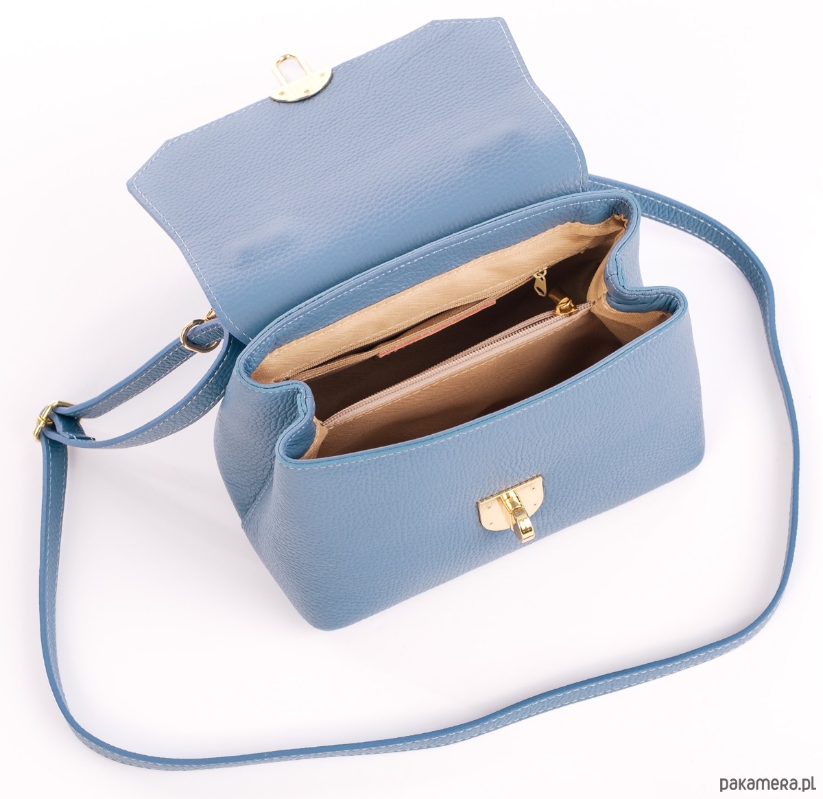 Elegancka torebka ze skóry naturalnej, do ręki lub na ramię, dopinany długi pasek