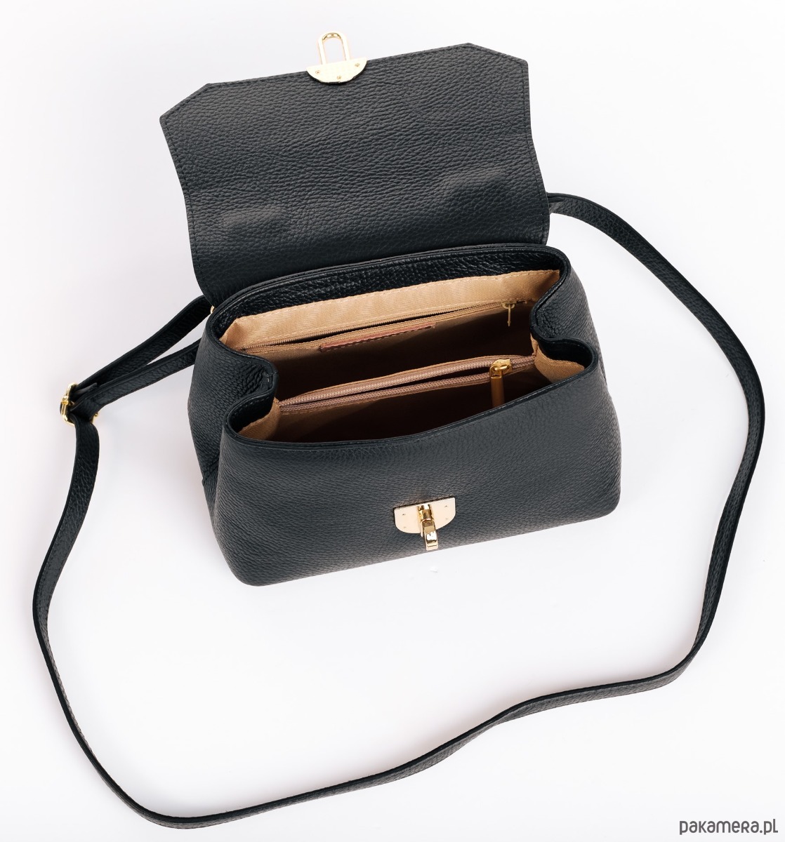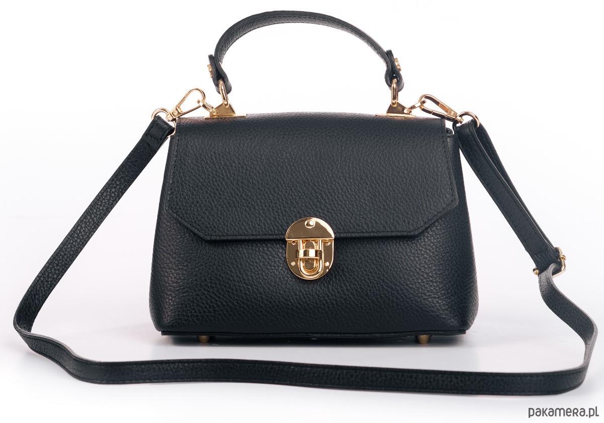 Elegancka torebka ze skóry naturalnej, do ręki lub na ramię, dopinany długi pasek