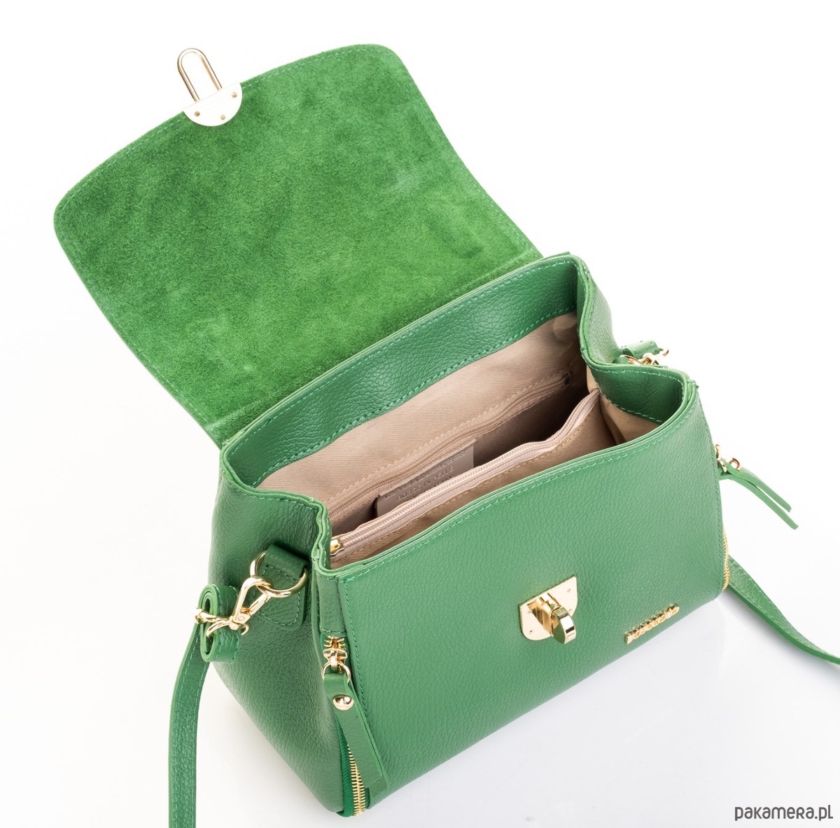 Bardzo elegancka torebka ze skóry naturalnej, oryginalne, ozdobne suwaki, torebka do ręki lub na ramię.