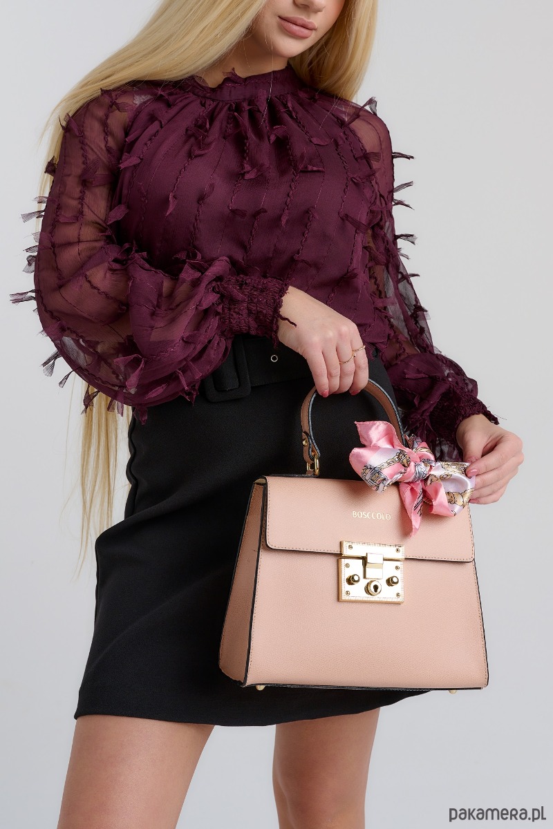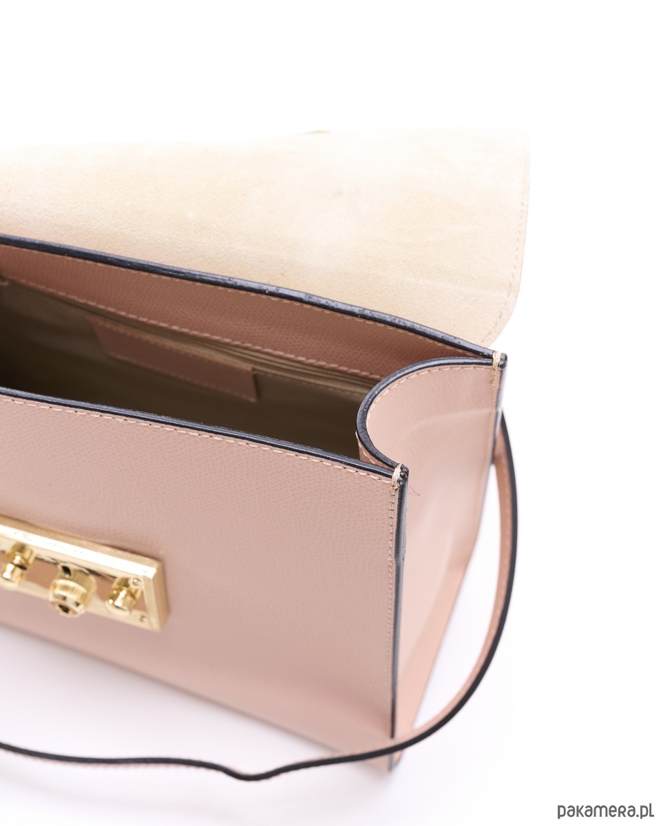 Kuferek, do ręki lub na ramię, dopinany pasek i dopasowana apaszka.