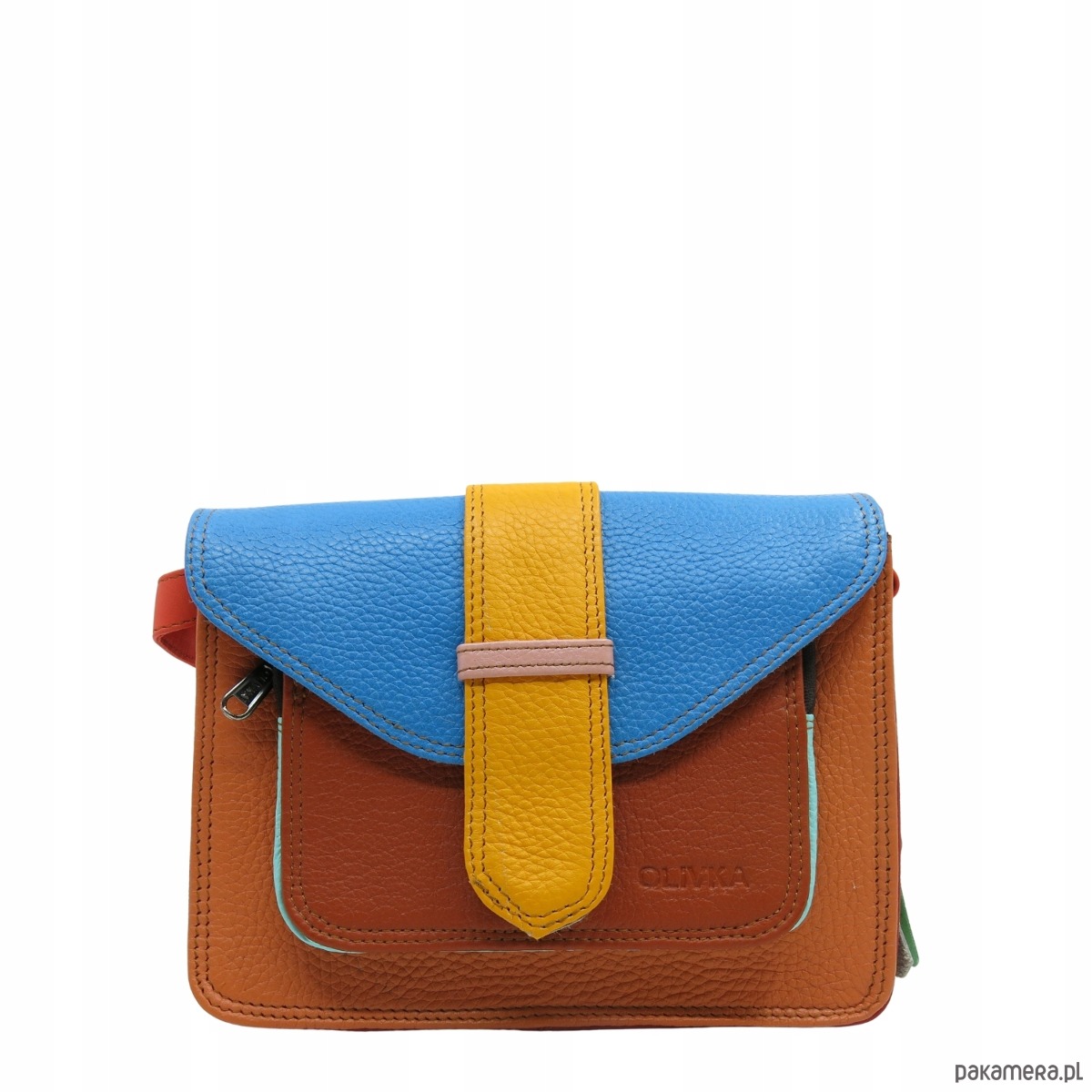Torebka skórzana dwustronny odwracalny pasek damska listonoszka eko OLIVKA
