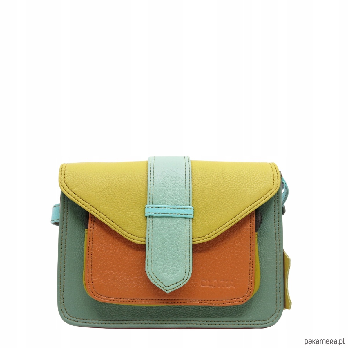 Torebka skórzana dwustronny odwracalny pasek damska listonoszka eko OLIVKA