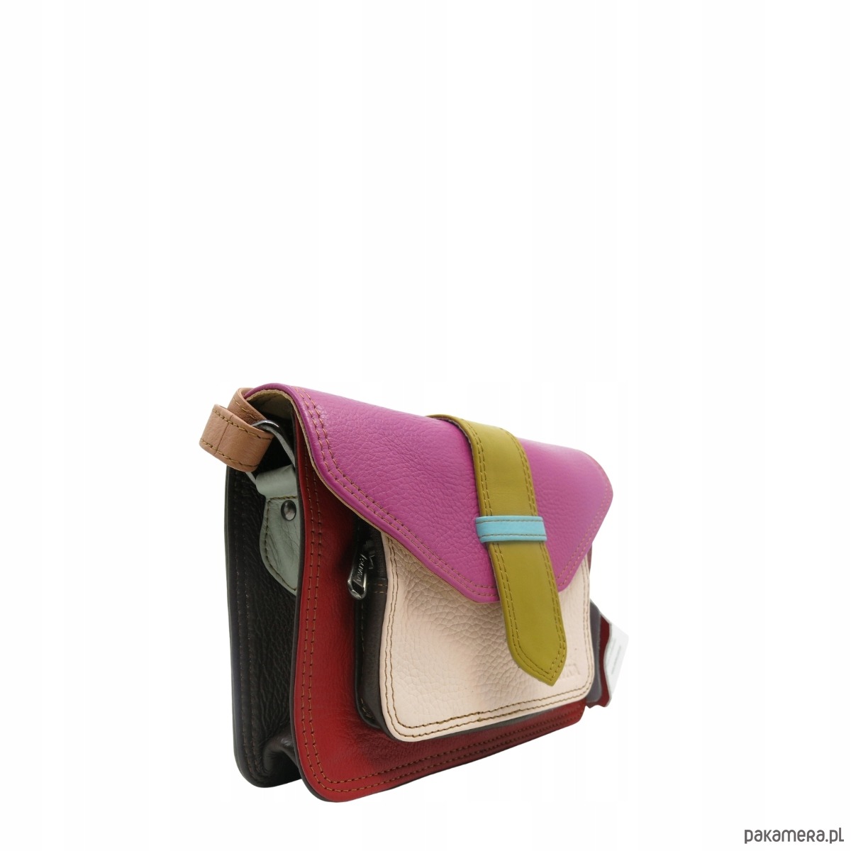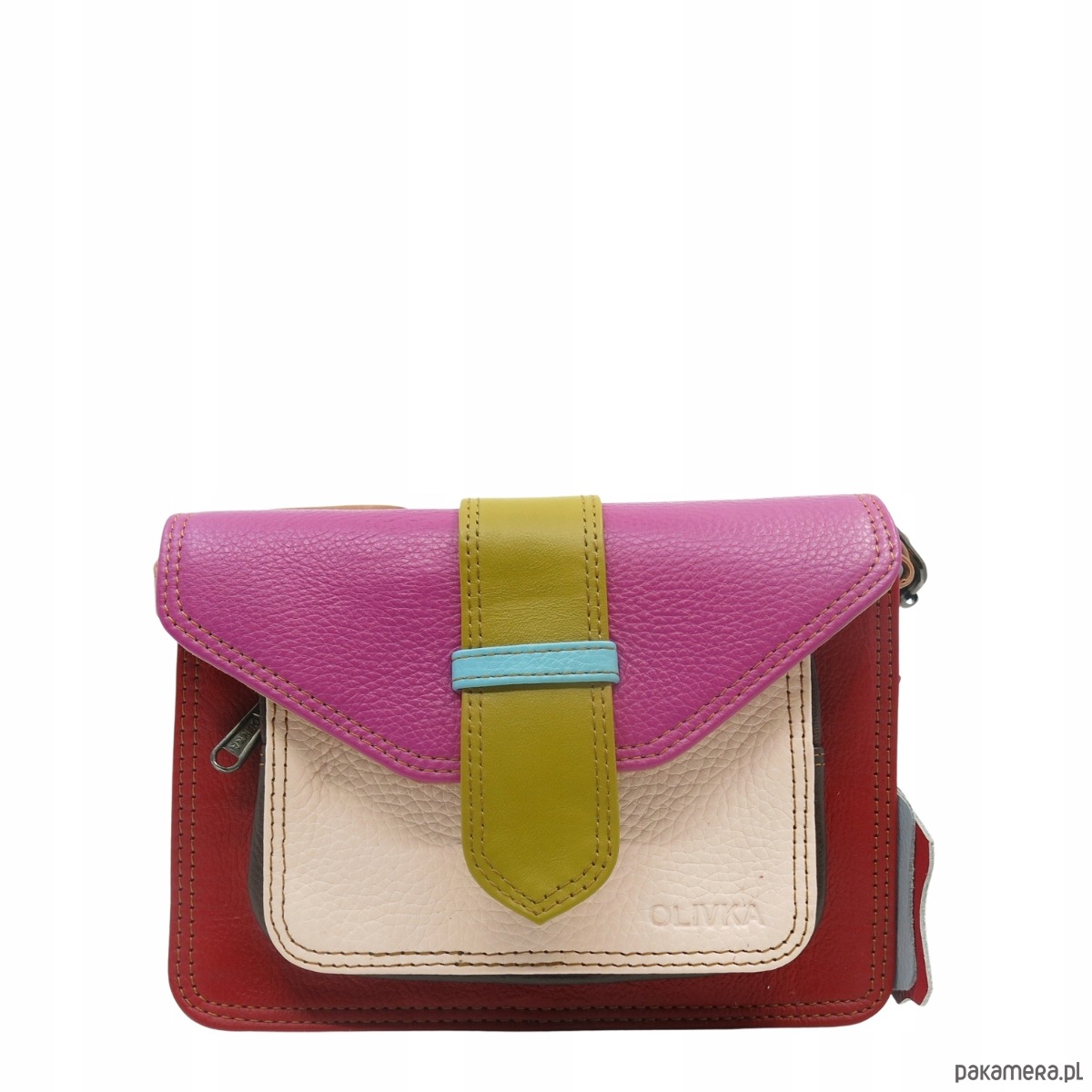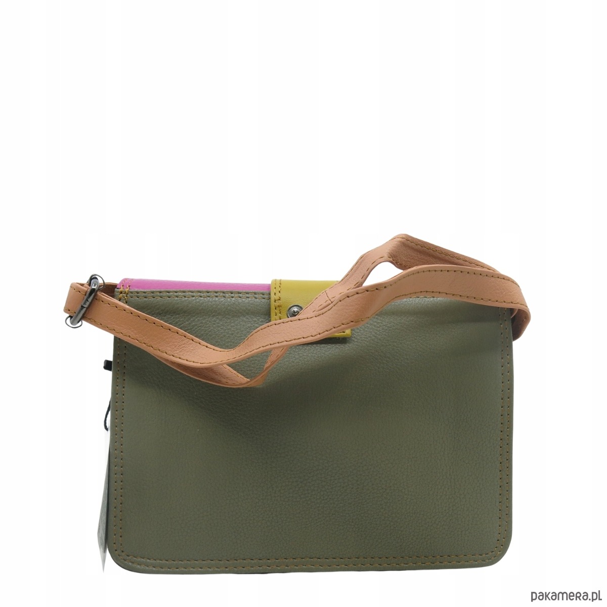 Torebka skórzana dwustronny odwracalny pasek damska listonoszka eko OLIVKA