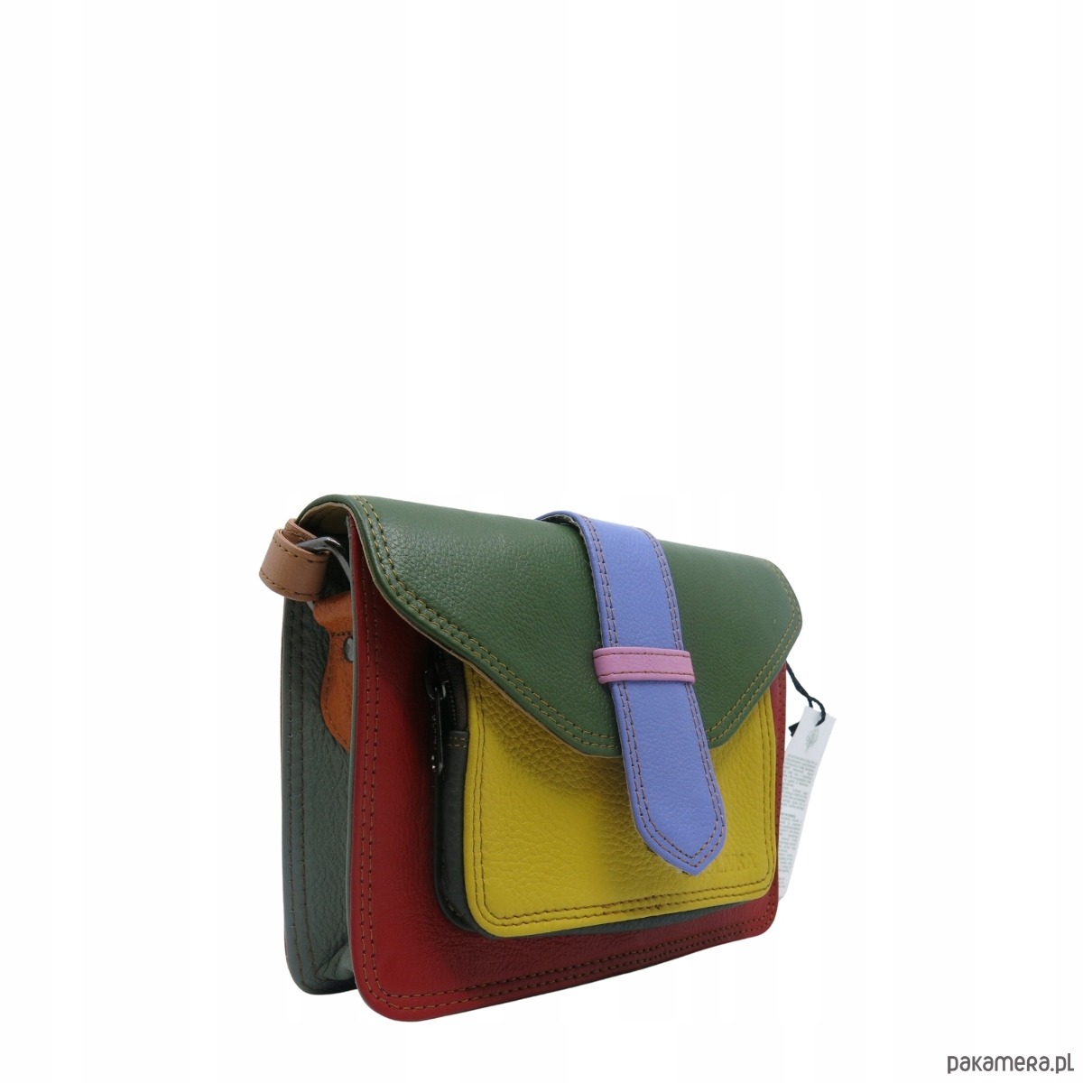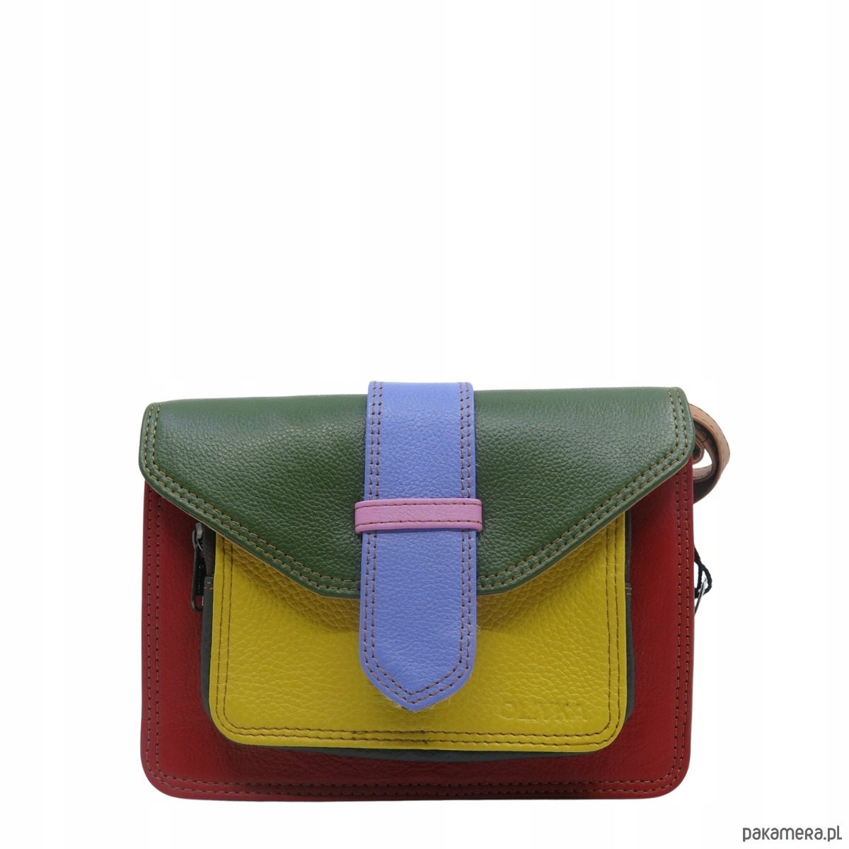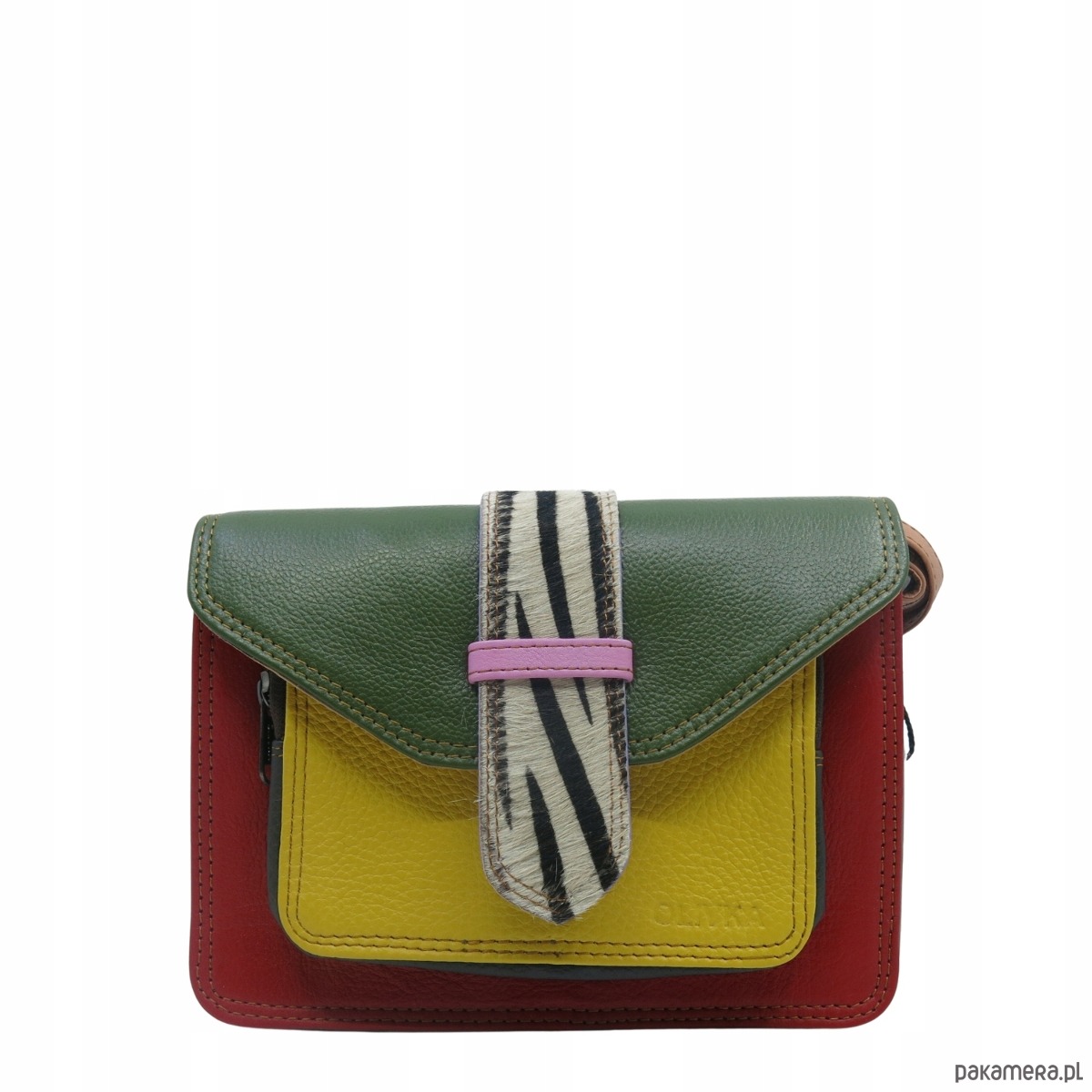 Torebka skórzana dwustronny odwracalny pasek damska listonoszka eko OLIVKA