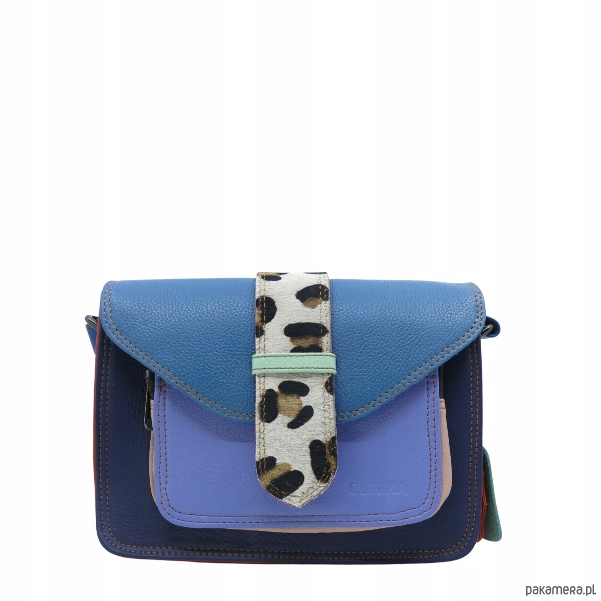 Torebka skórzana dwustronny odwracalny pasek damska listonoszka eko OLIVKA
