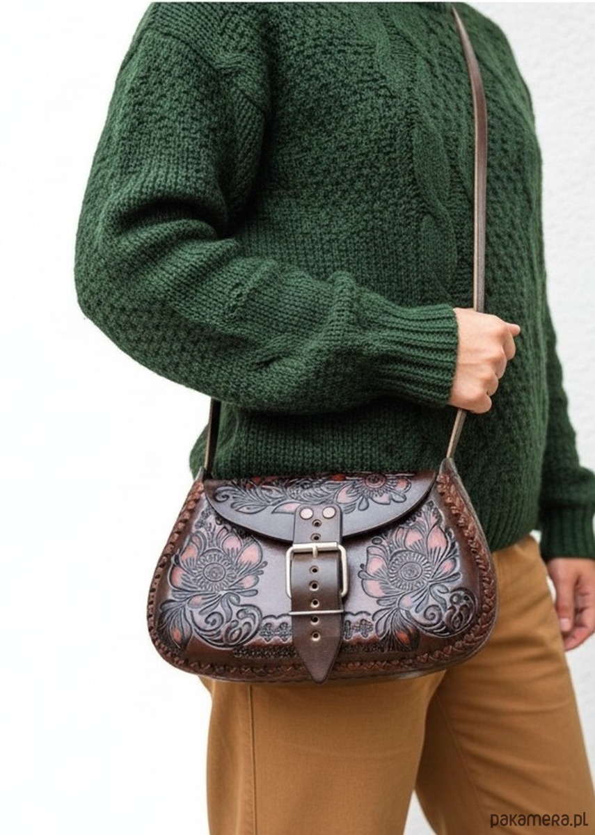 Torebka Folklora to unikatowy dodatek, który łączy w sobie tradycję rzemiosła i nowoczesny design. Wykonana ręcznie z grubej skóry naturalnej, charakteryzuje się wyjątkową trwałością i elegancją. Jej powierzchnię zdobią misterne wzory w kształcie kwiatów, które nadają torebce artystycznego wyrazu i nawiązują do folklorystycznych motywów. Dzięki dużej przestrzeni w środku Folklora jest idealna na co dzień, łącząc funkcjonalność z niepowtarzalnym stylem. Każdy egzemplarz jest jedyny w swoim rodzaju, co czyni ją idealnym wyborem dla osób ceniących oryginalność i rękodzieło.