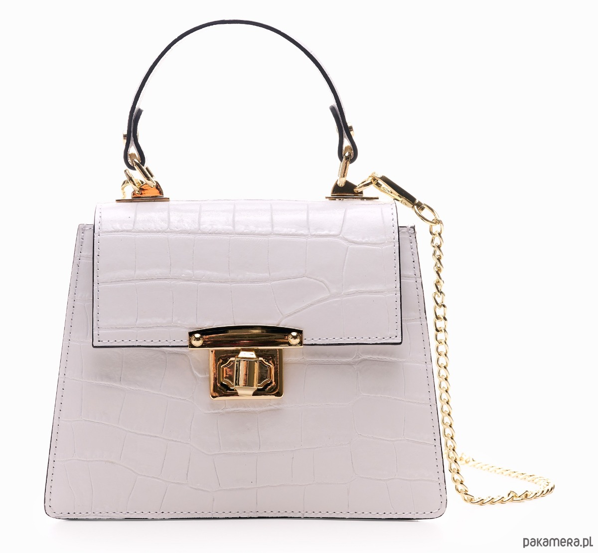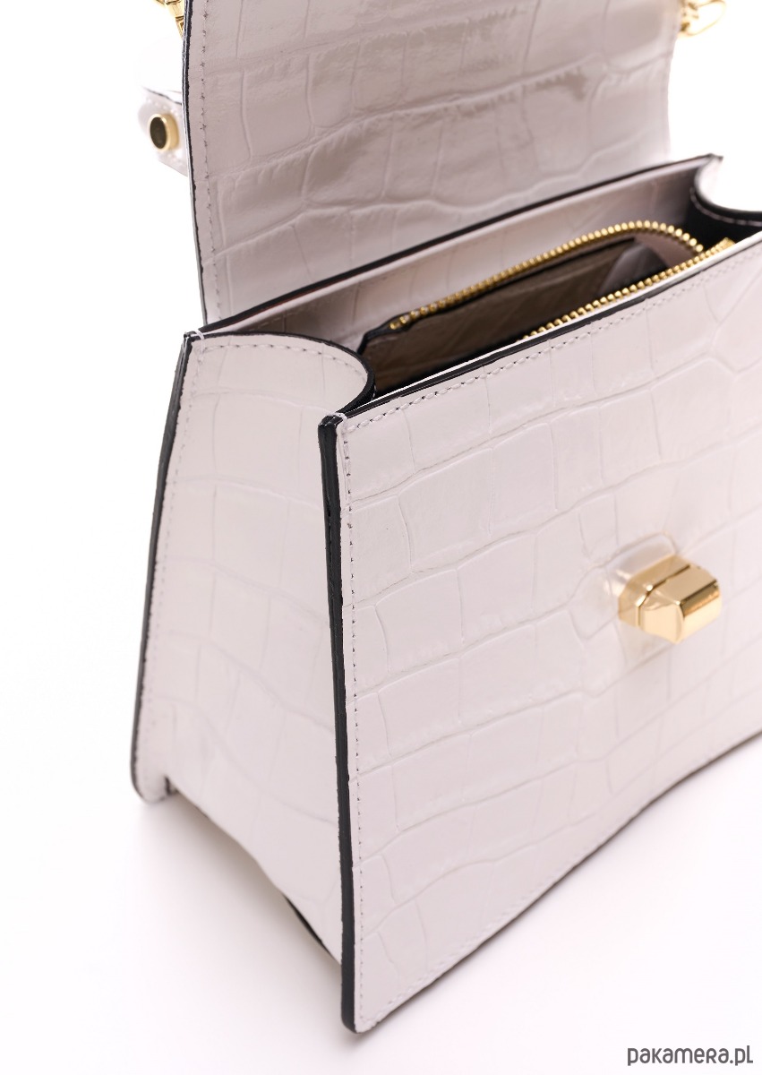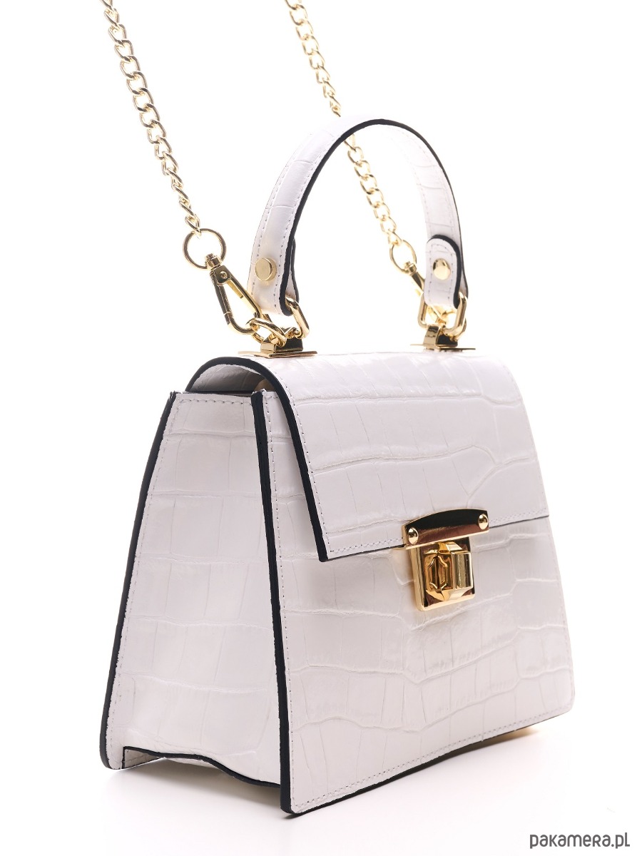 Elegancka torebka ze skóry naturalnej o fakturze krokodyla, do ręki lub na ramię, idealna do codziennych stylizacji.