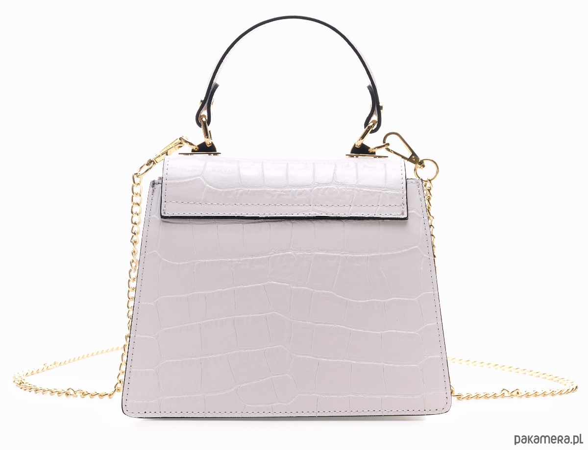Ozdobne zamknięcie, dopinany łańcuszek do przewieszenia torebki przez ramię.