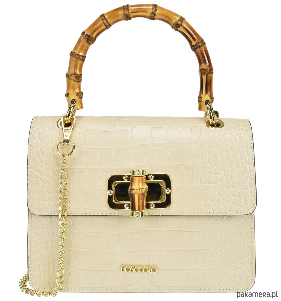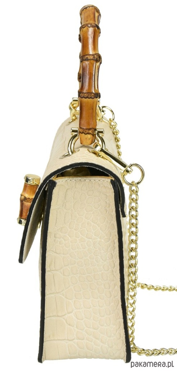 Kuferek, do ręki lub na ramię, dopinany pasek, ozdobny, bambusowy uchwyt i zamknięcie,