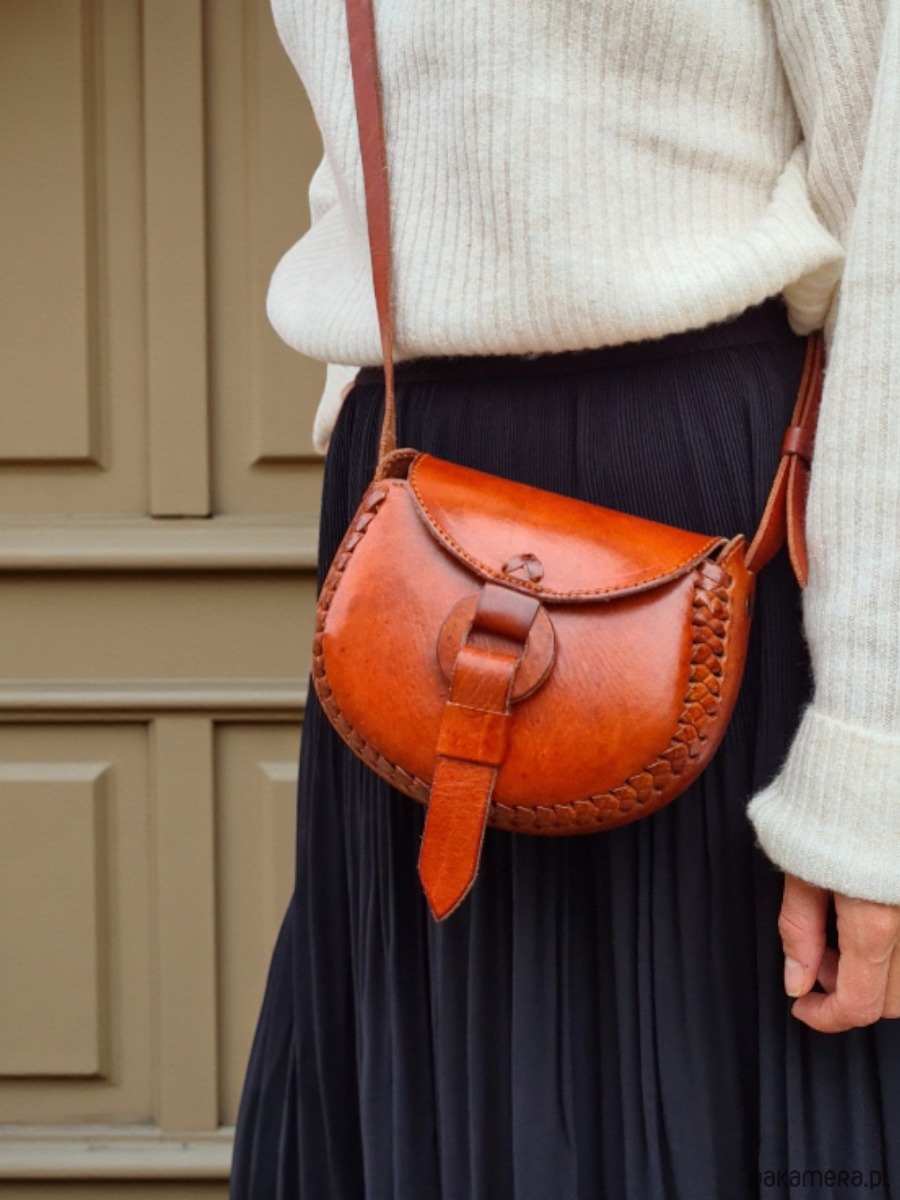 Śliczna, mała torebka damska wykonana ręcznie ze skóry naturalnej. Torebka o prostym, półokrągłym kształcie i gładkiej powierzchni. Duża sprzączka i grube szycia nadają jej unikatowości i charakteru, a długi regulowany pasek ułatwi dopasowanie jej do Twoich potrzeb. Klasyczny krój sprawia, że będzie ona Twoim cichym sojusznikiem do każdej kreacji.