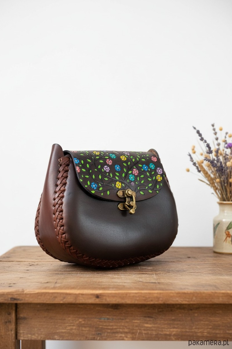 Skórzana torebka, ręcznie wykonana w Meksyku z grubej skóry naturalnej. Jej unikalny design zdobią wzory z motywem drobnych kwiatów, które nadają jej niepowtarzalny styl i charakter. Każdy detal torebki został starannie wykonany przez doświadczonych rzemieślników, co sprawia, że jest ona nie tylko pięknym, ale także trwałym dodatkiem do garderoby. Wykorzystanie skóry naturalnej gwarantuje, że torebka będzie służyć przez wiele lat, zachowując swój wyjątkowy wygląd. Jej ciekawy design sprawia, że doskonale sprawdzi się jako dodatek zarówno do codziennych stylizacji, jak i na wyjątkowe okazje. Ta torebka to nie tylko praktyczny element garderoby, ale również wyraz artystycznego kunsztu meksykańskich rzemieślników, którzy tworząc ją, przelewają w nią swoją pasję i tradycje.