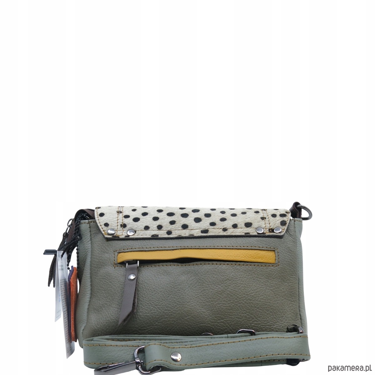 Torebka skórzana, miękka, na ramię długi pasek oryginalna zero waste OLIVKA