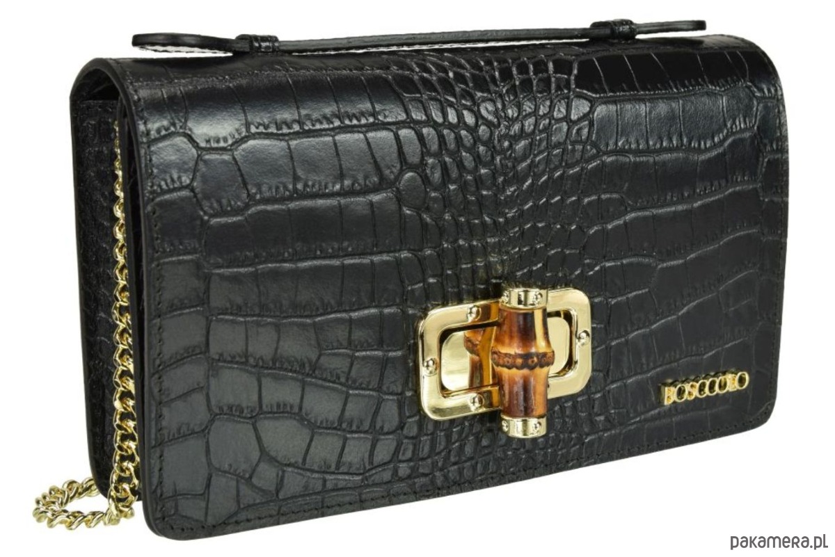 Elegancka torebka ze skóry naturalnej o fakturze krokodyla.