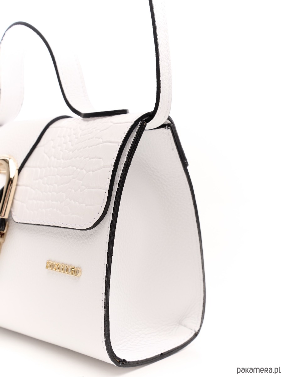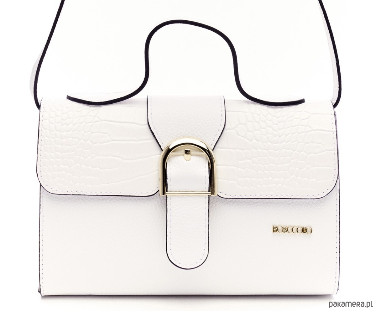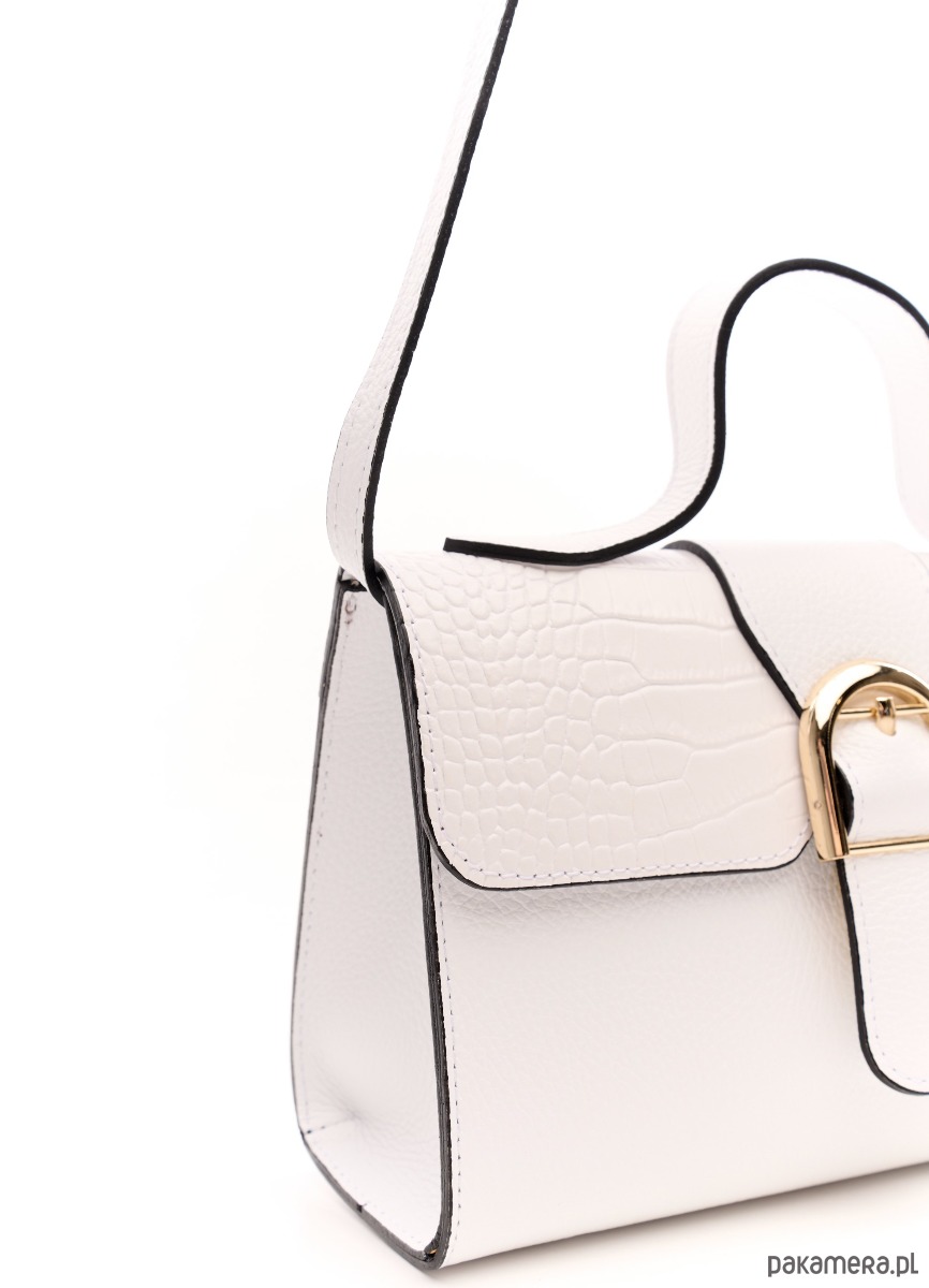 Elegancka torebka ze skóry naturalnej z klapką ze skóry o fakturze krokodyla.