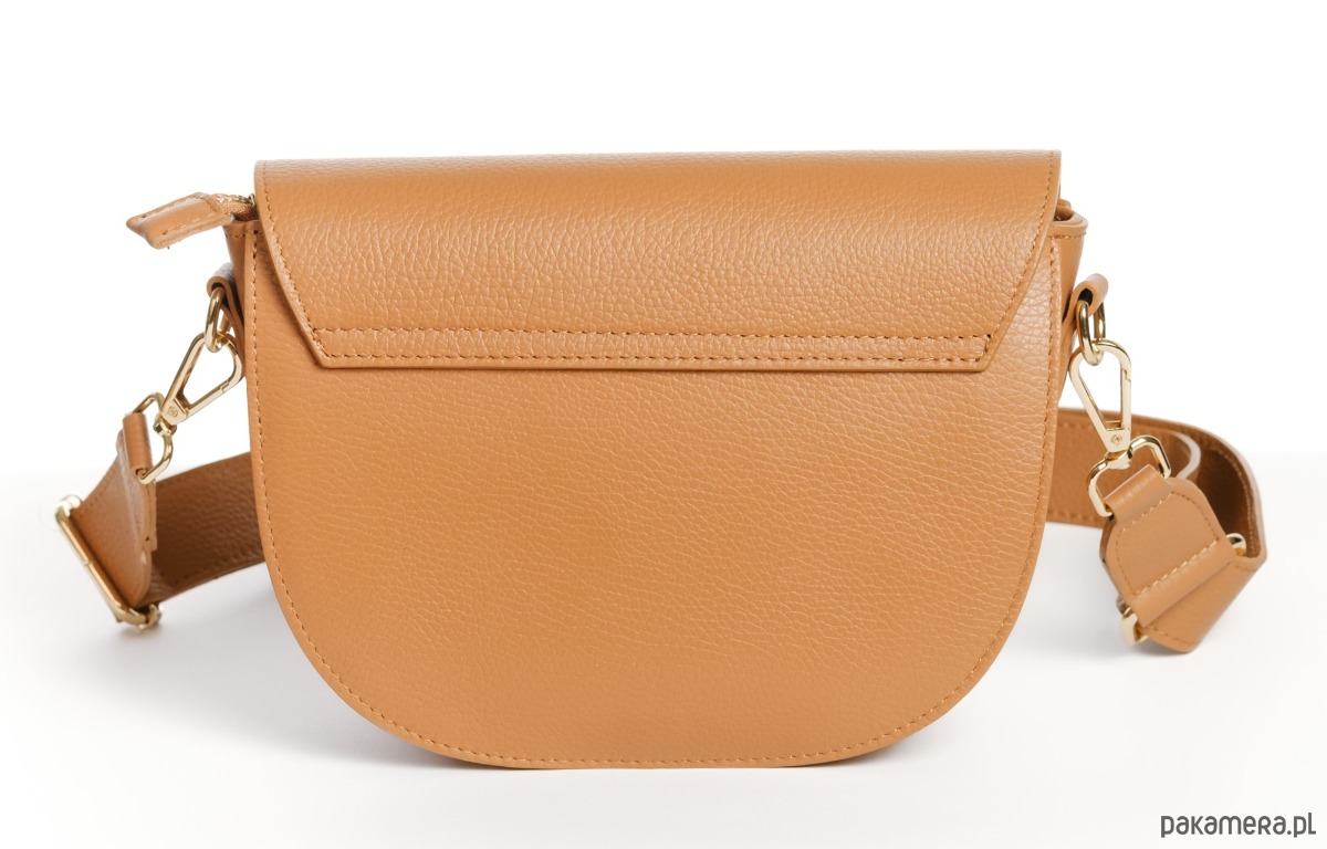 Torebka ze skóry naturalnej na ramię, półokrągła. Elegancki kształt.