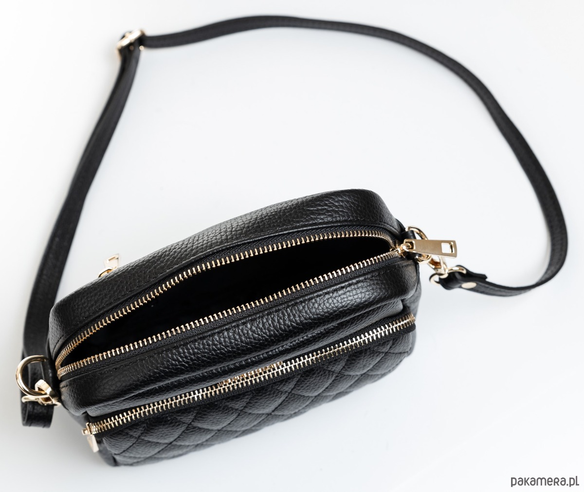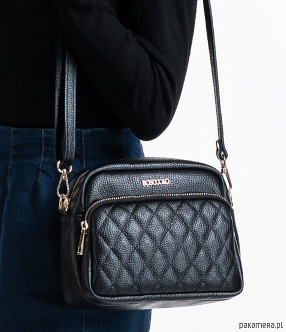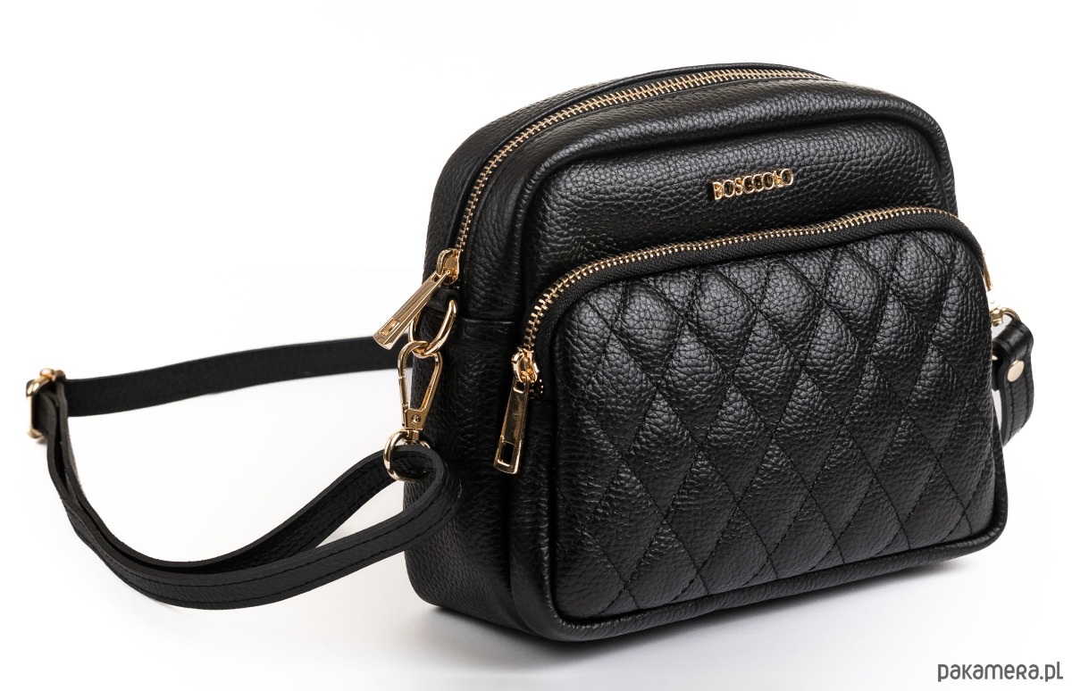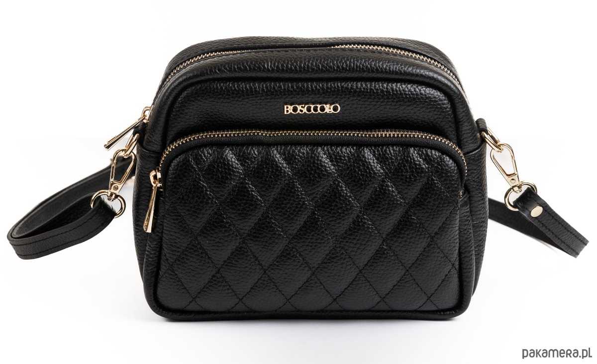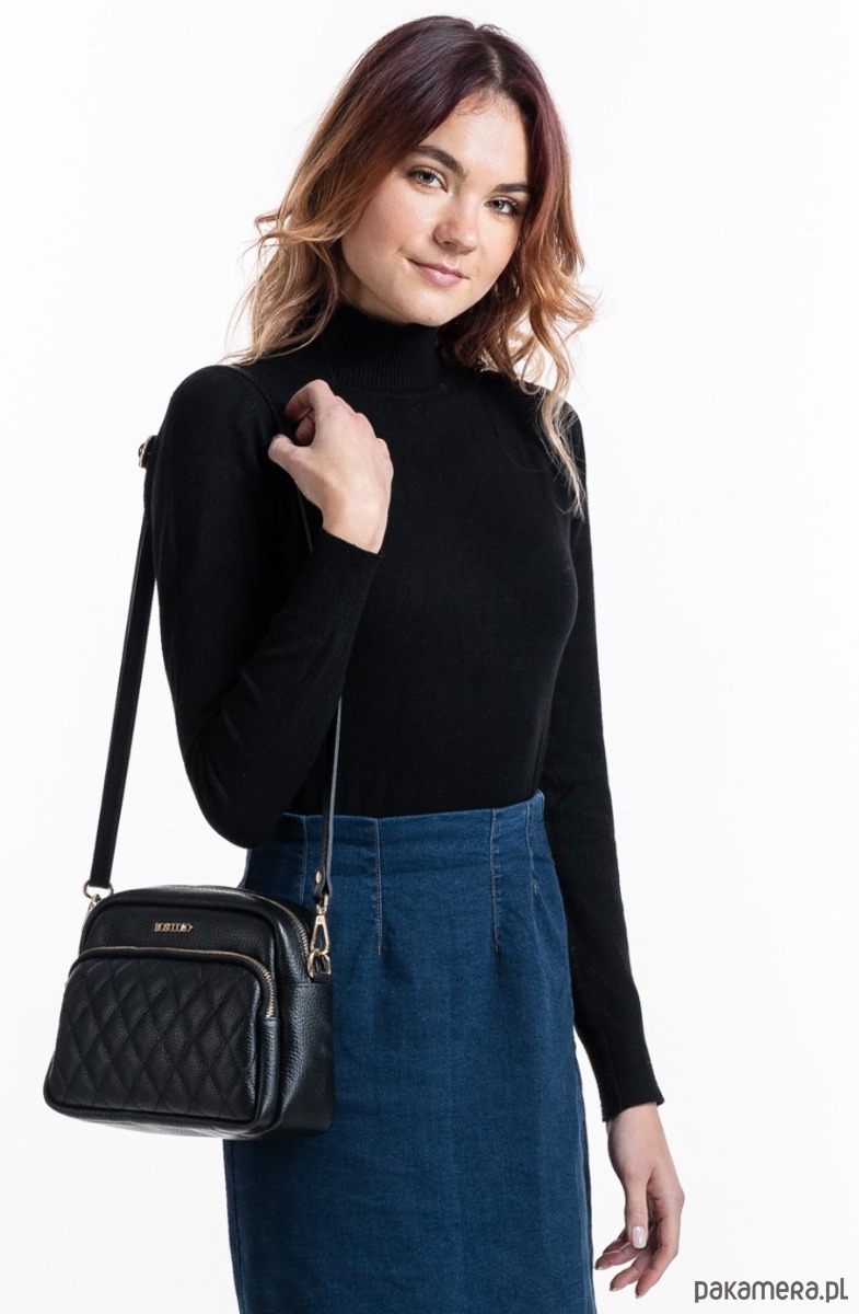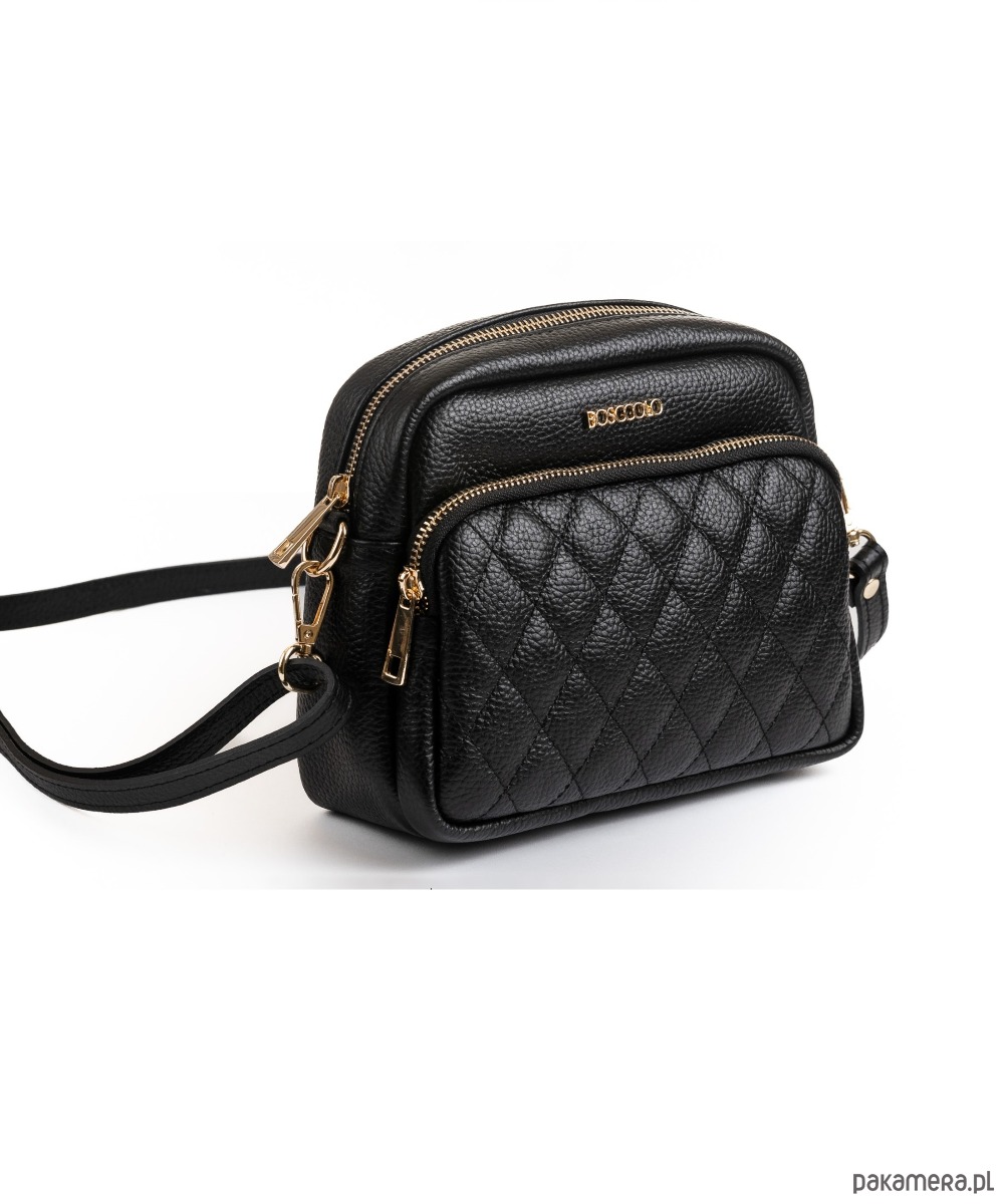 Torebka ze skóry naturalnej, na ramię, crossbody. Elegancki kształt, pikowany przód.