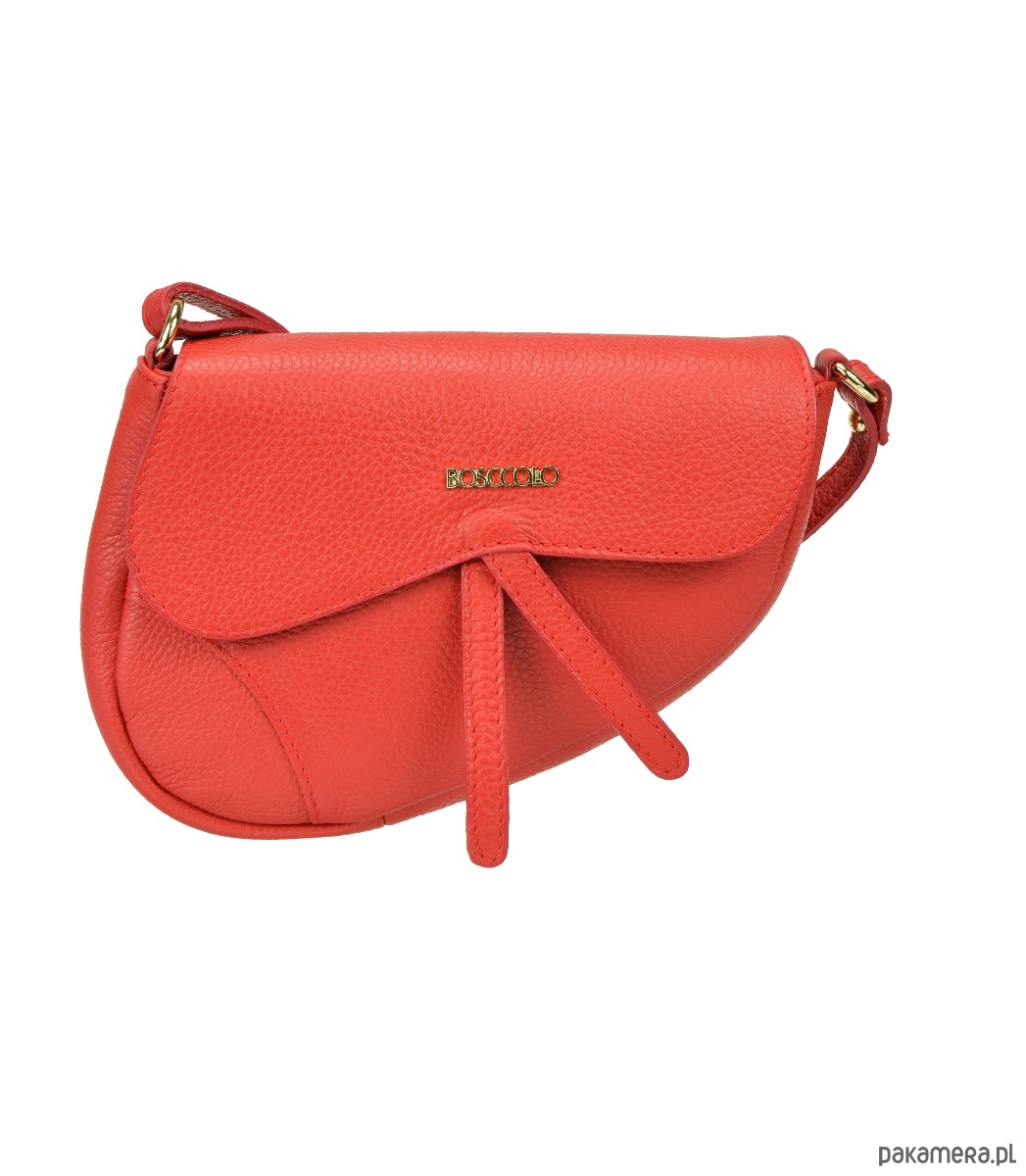 Elegancka torebka ze skóry naturalnej, na ramię, oryginalny kształt, klapka.