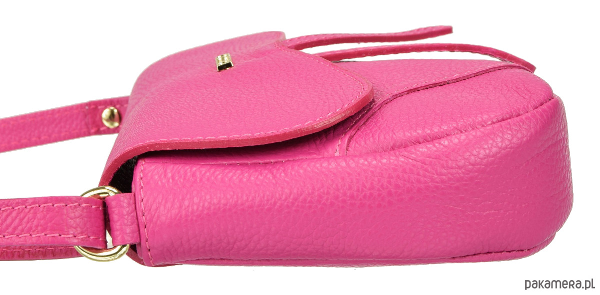 Elegancka torebka ze skóry naturalnej, na ramię, oryginalny kształt, klapka.