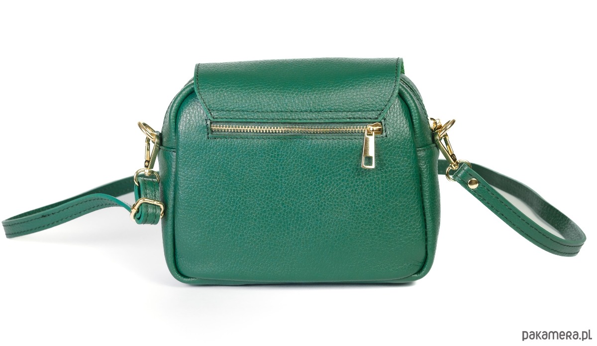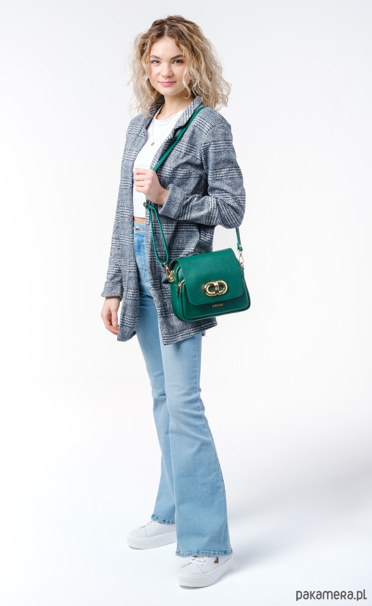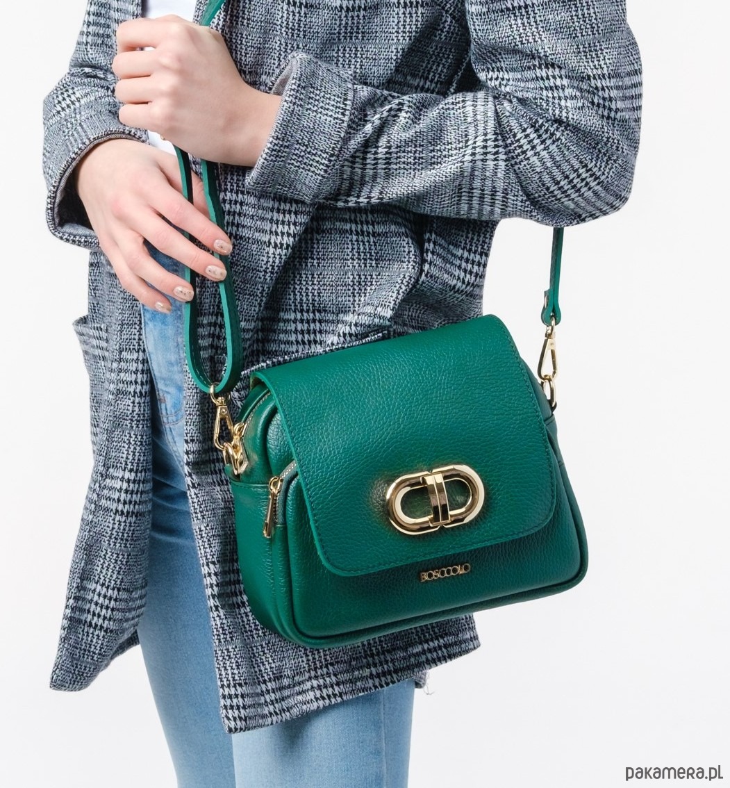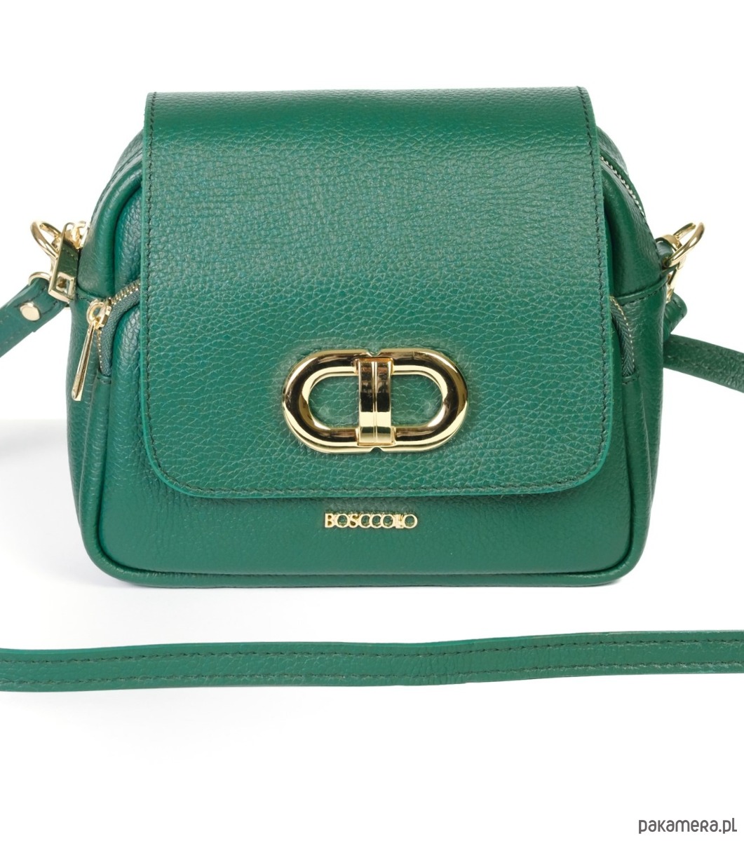 Torebka ze skóry naturalnej, na ramię, crossbody. Elegancki kształ, złota ozdoba.