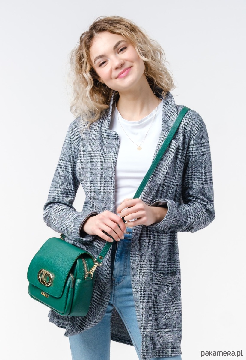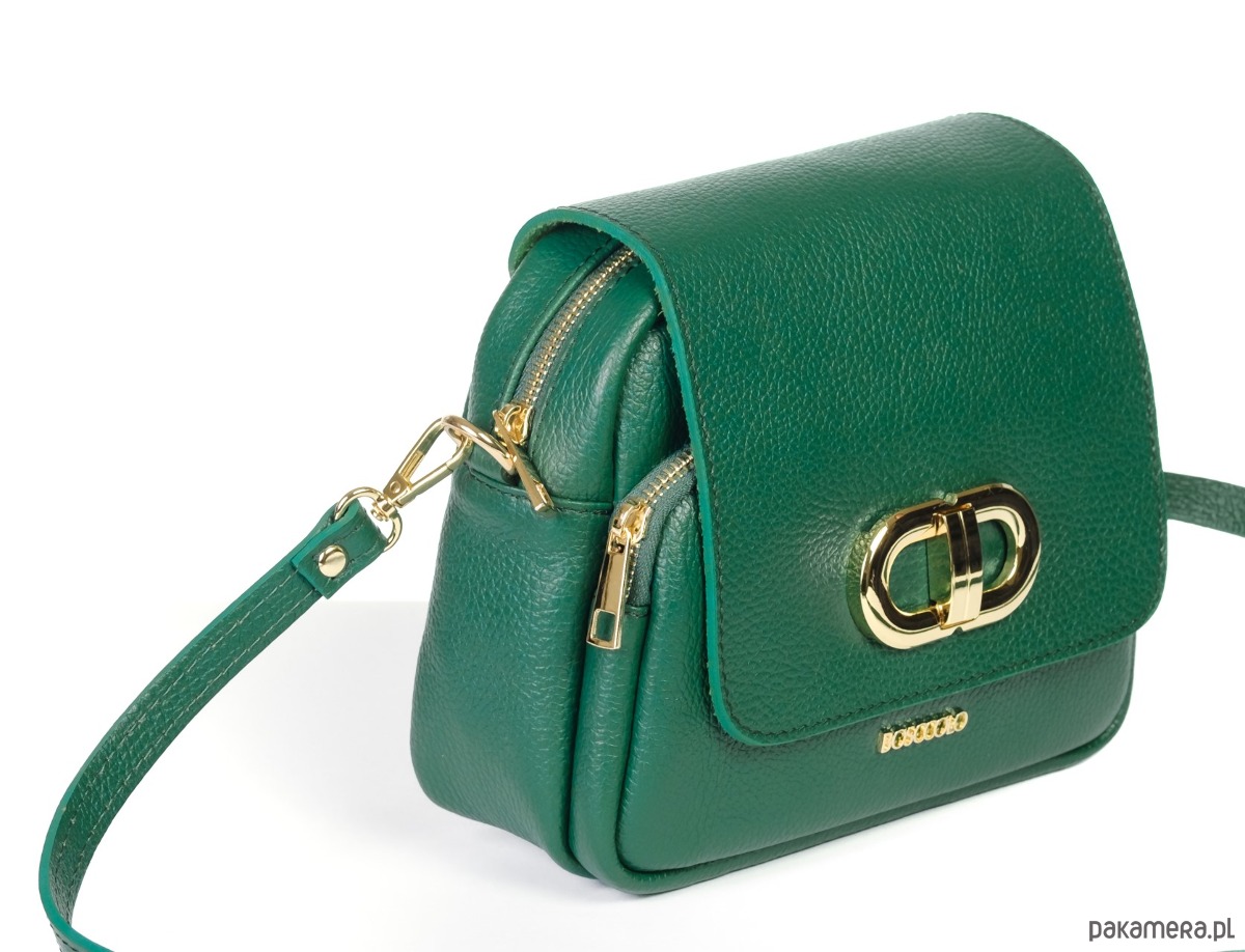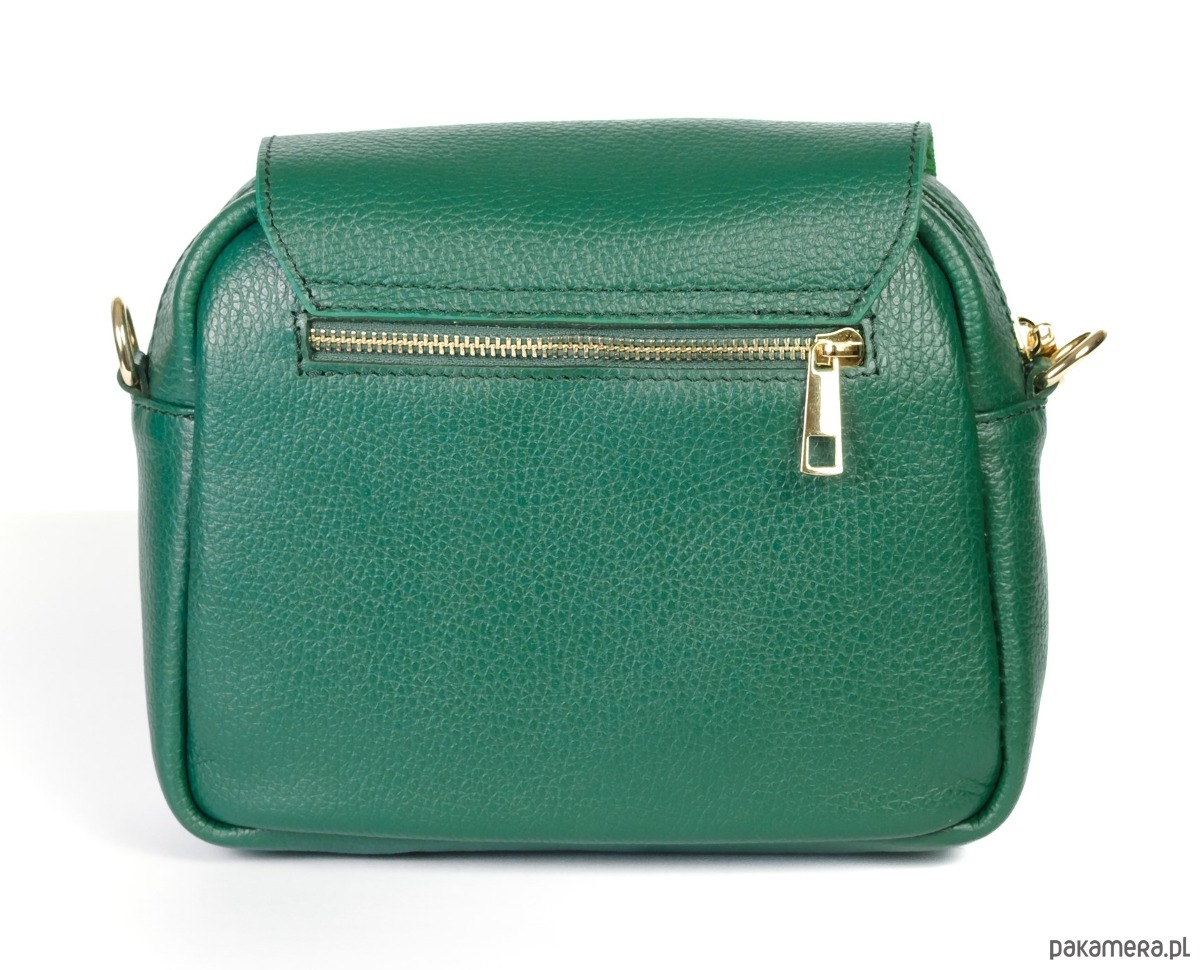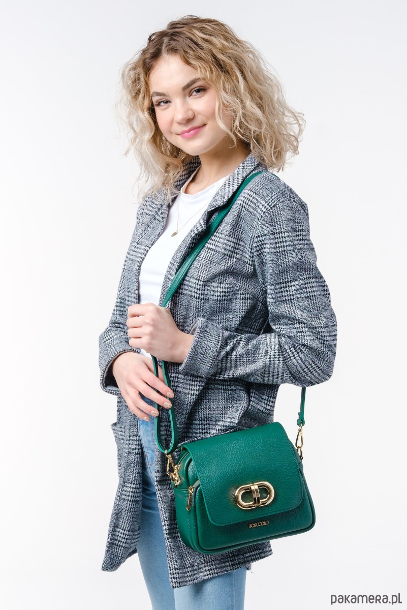 Torebka ze skóry naturalnej, na ramię, crossbody. Elegancki kształ, złota ozdoba.