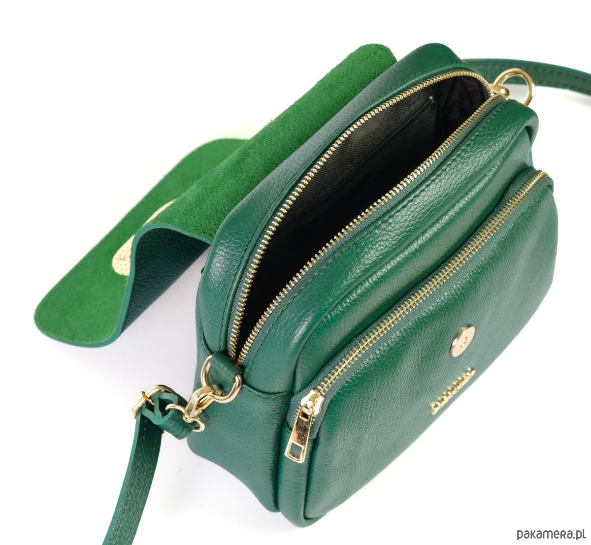 - na zewnątrz duża kieszeń zamykana na suwak i klapkę na magnes