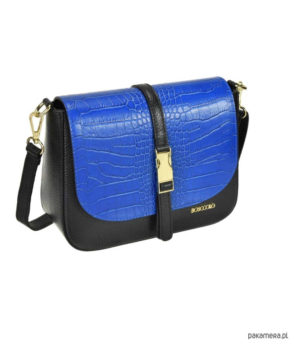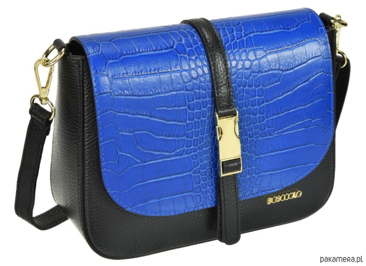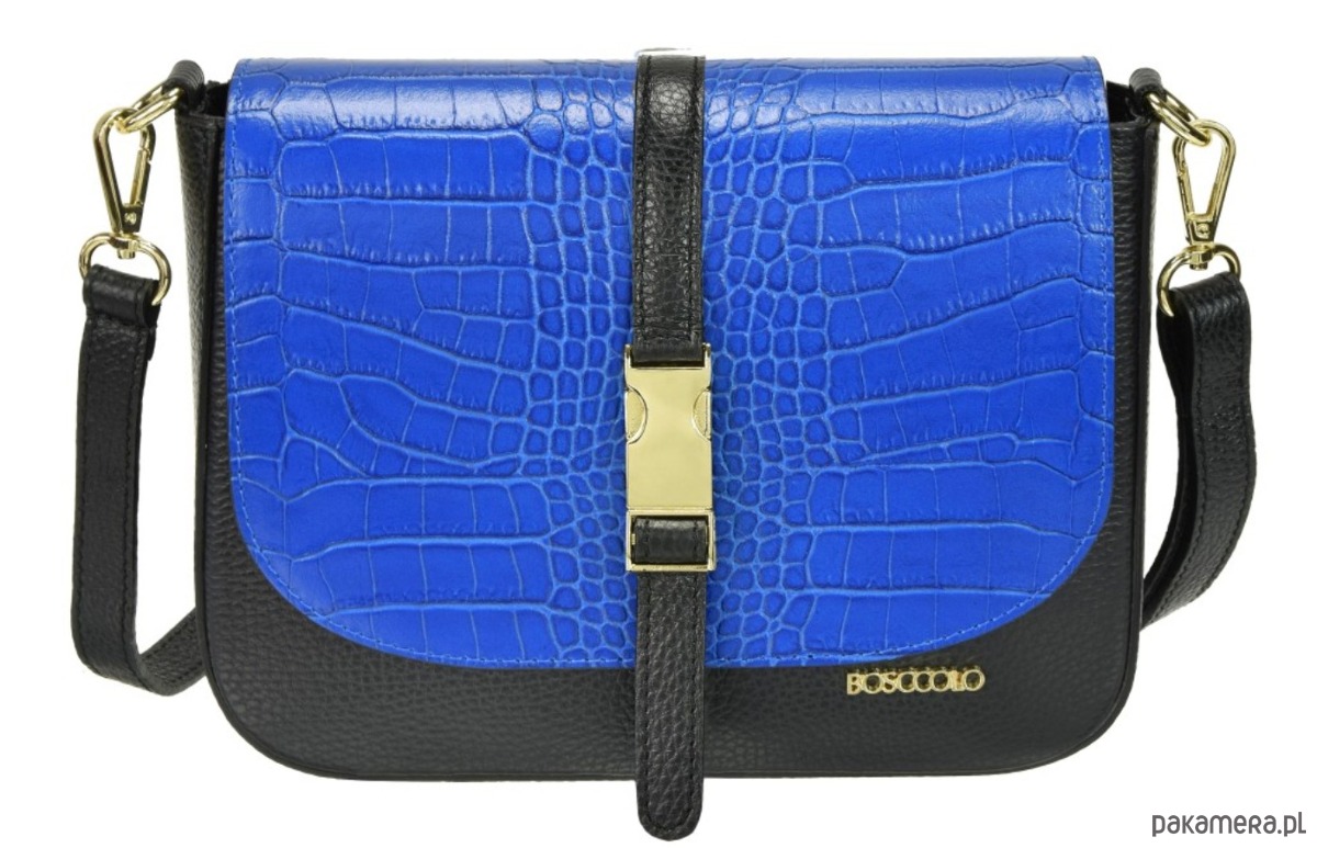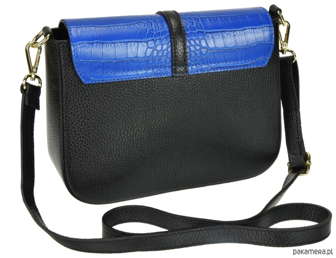 Torebka skórzana na ramię - czarno niebieska (6180)