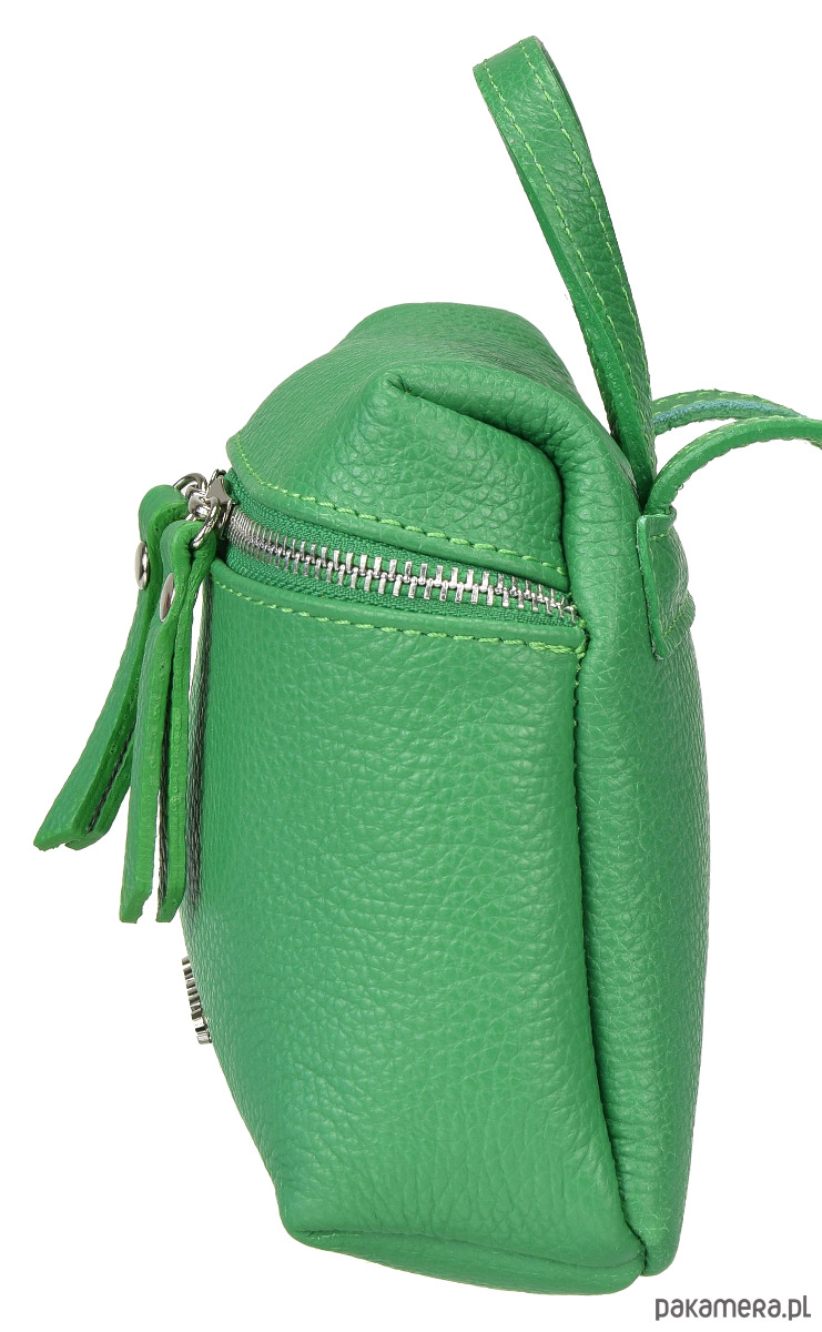 Torebka ze skóry naturalnej, idealna dla aktywnych kobiet. Jest mała, ale wystarczająca aby zmieścić portfel i telefon.