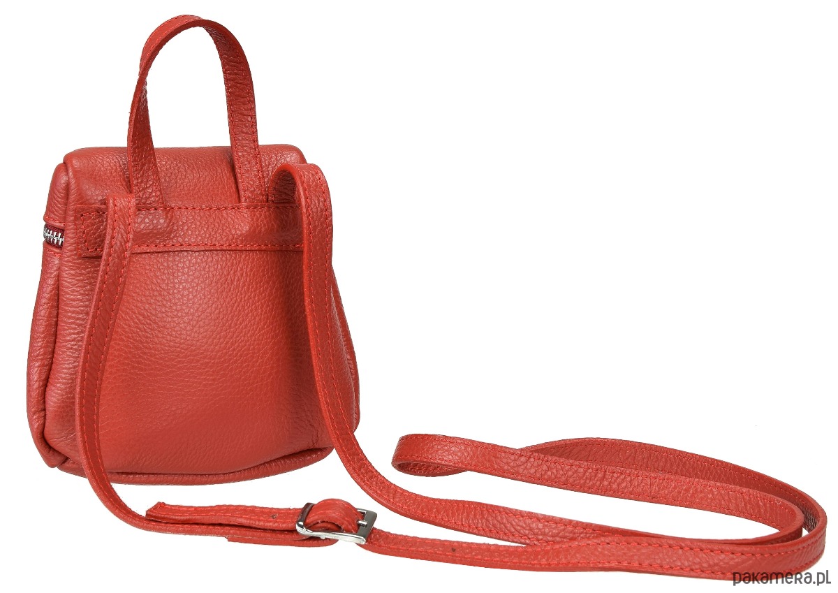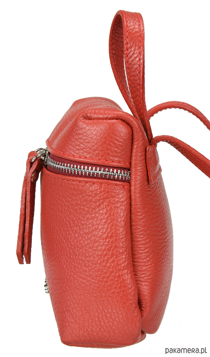 Torebka ze skóry naturalnej, idealna dla aktywnych kobiet. Jest mała, ale wystarczająca aby zmieścić portfel i telefon.