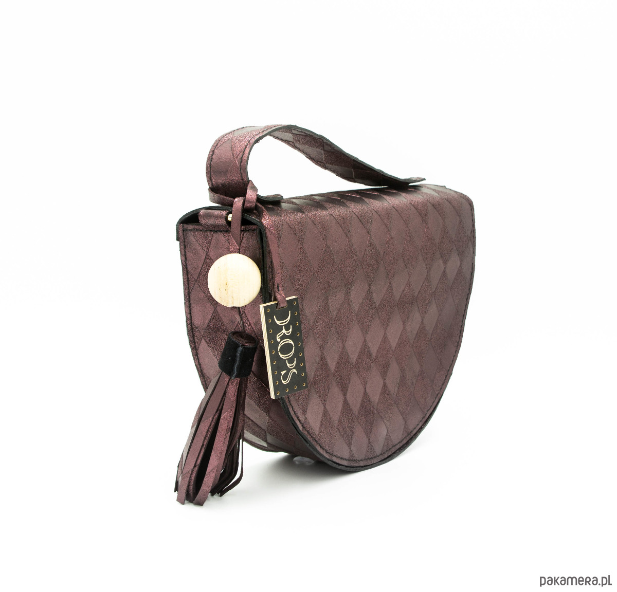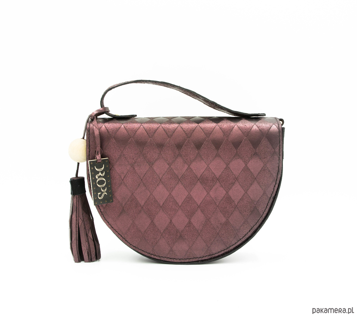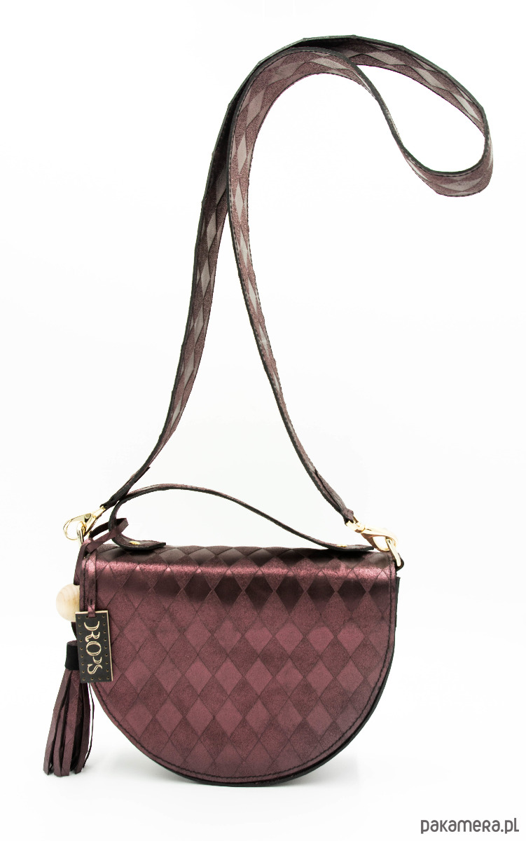 Poszukujesz torebki, która stanie się dopełnieniem klasycznej stylizacji, jak i tej utrzymanej zgodnie z obecnymi trendami? Torebka No.6 łączy w sobie te dwie funkcje. Ta niewielkich rozmiarów torebka wykonana została ze skóry naturalnej w kolorze czerwieni z domieszką brązu. Wzór na skórze przedstawia romby. Torebka w swoim kształcie przypomina półksiężyc. No. 6 posiada asymetryczną rączkę, dzięki której swobodnie można nosić ją w ręku. Torebkę można również nosić przewieszoną przez ramię ponieważ posiada dopinany, szeroki pasek. Do torebki dołączona jest drewniana zawieszka z firmowym logo DROPS oraz niewielki chwost. Torebka No. 6 w całości wykonana jest ręcznie. Produkt handmade.