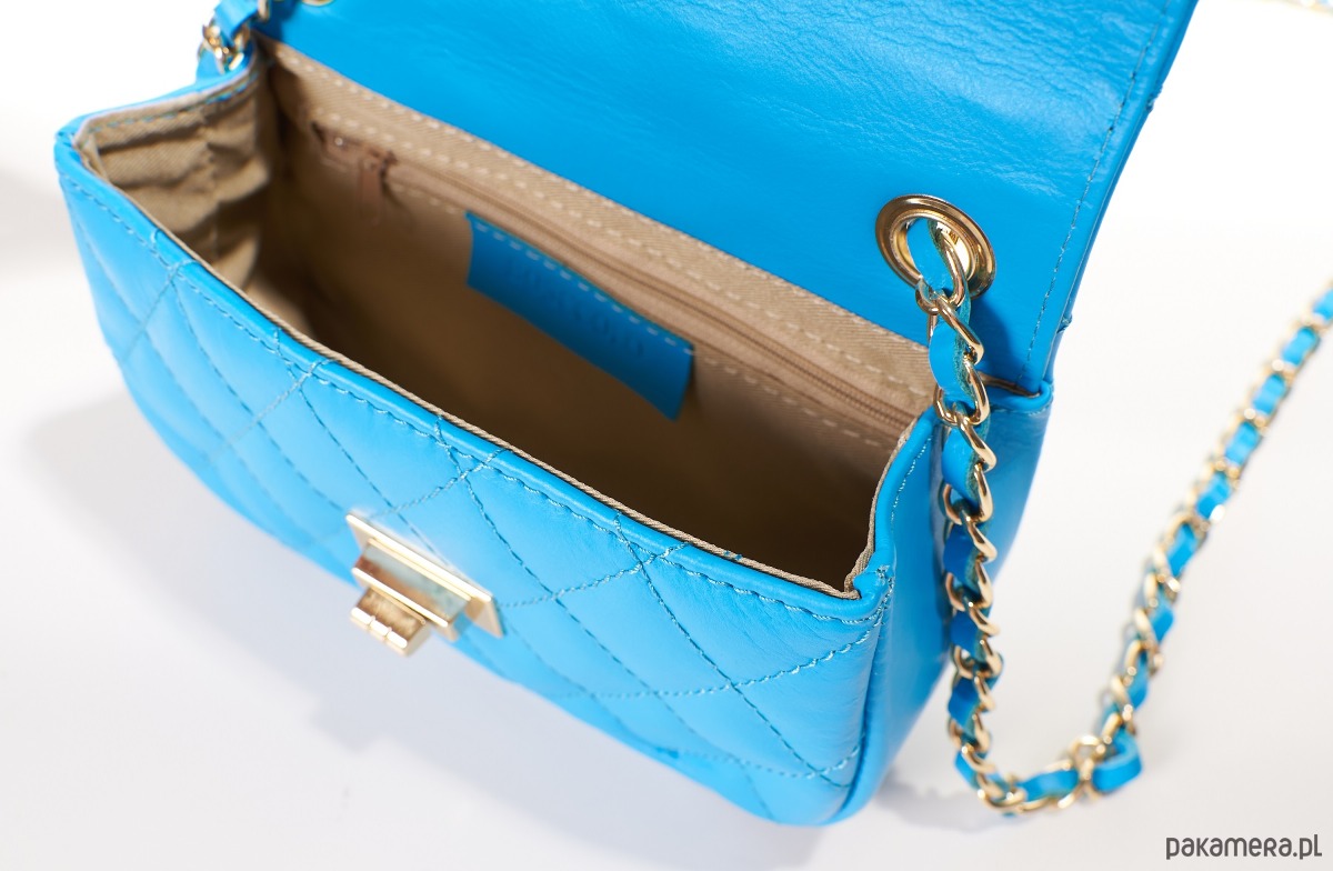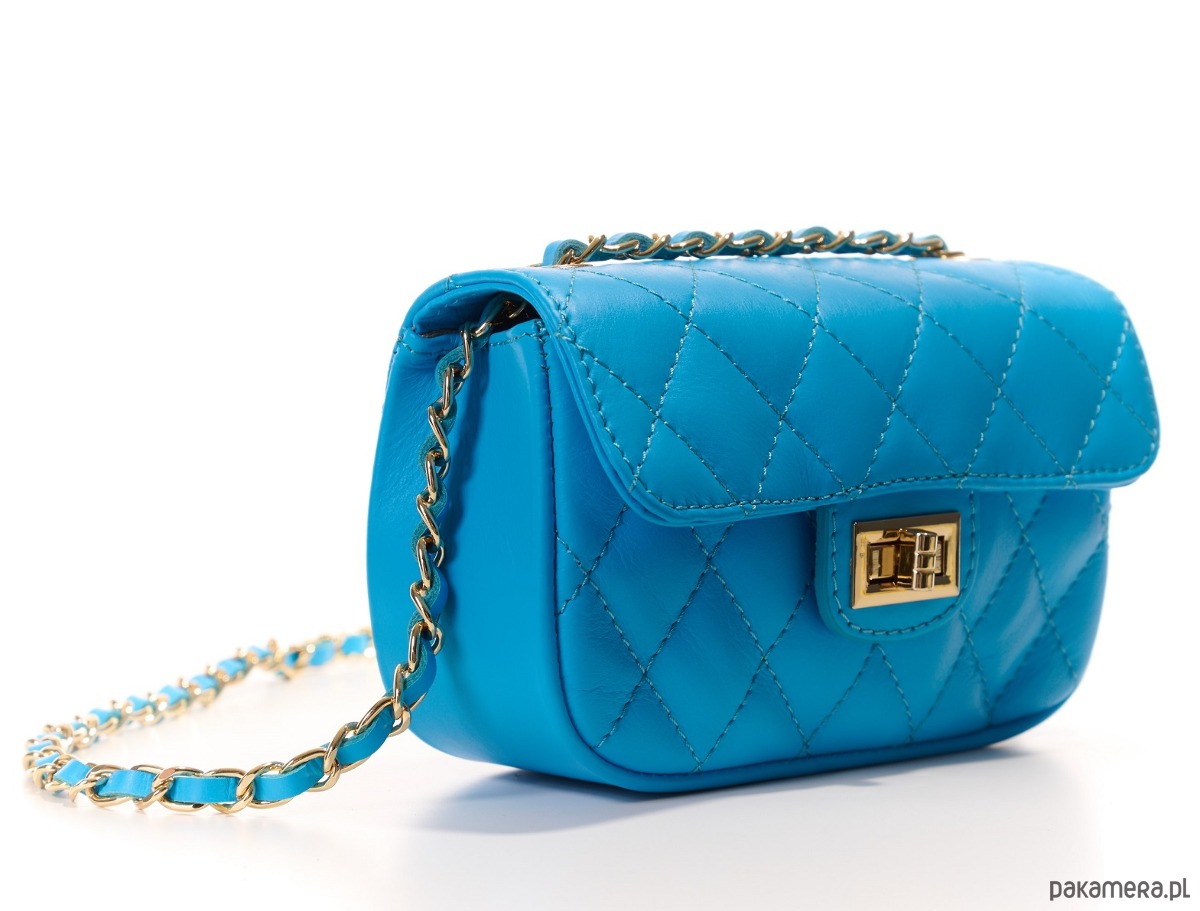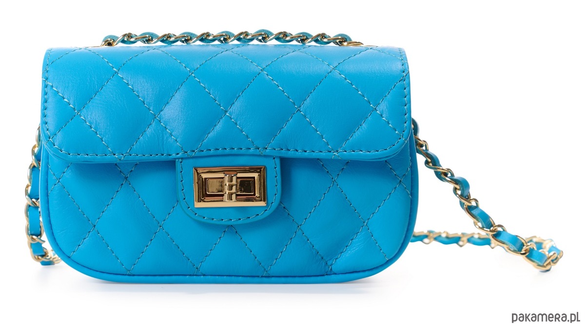 Torebka skórzana na ramię - pikowana - turkus (6502)